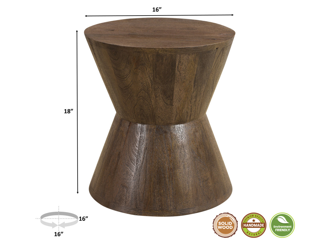 Set of three brown solid wood round solid furniture set is the perfect addition to your living room. Designed with a modern touch, this furniture set enhances the aesthetic of any space. Each piece is hand crafted, ensuring attention to detail and quality that sets it apart from mass-produced options. The rich brown color adds warmth and sophistication, creating an inviting atmosphere for family and friends. These round tables offer versatility in arrangement, allowing you to customize your setup according to your needs. With durability in mind, this set is built to withstand everyday use while maintaining its allure. Elevate your home decor with this stylish and functional furniture collection that complements various design preferences. 18.00-inch h x 16.00-inch w x 16.00-inch d.