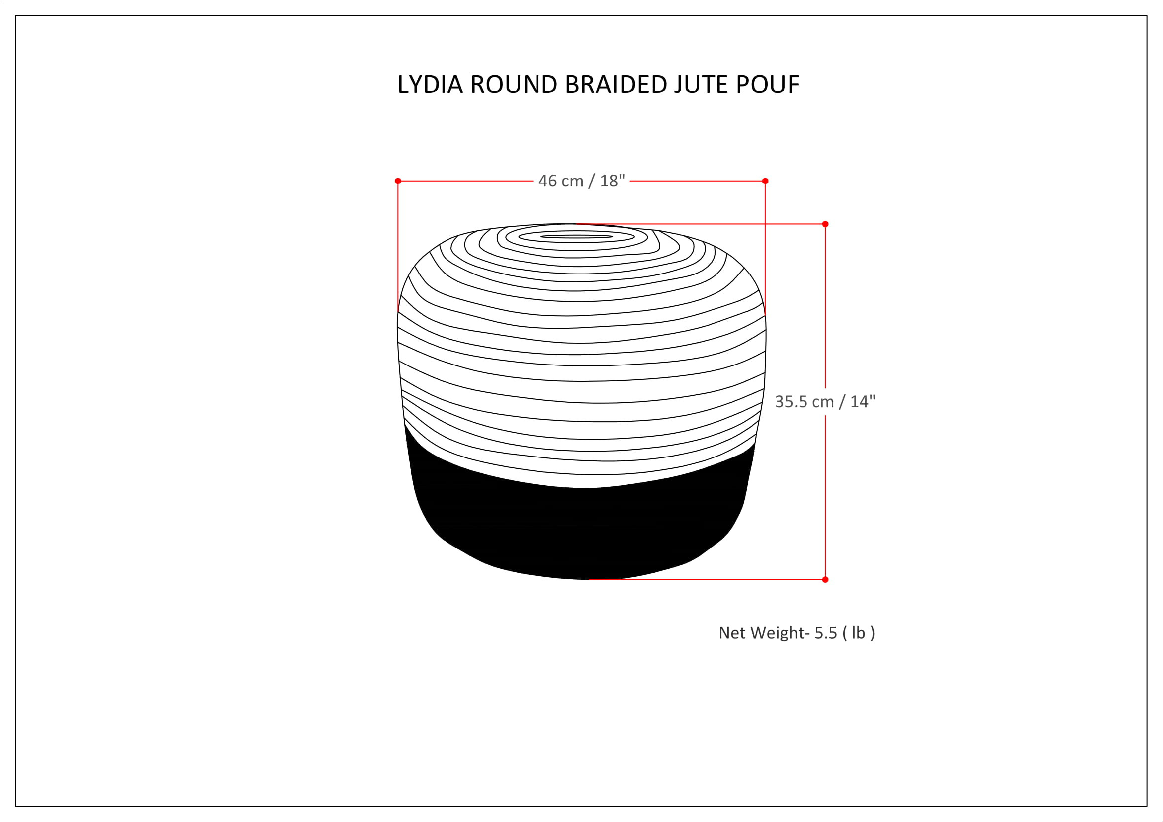 Optimize your space and add some charm to your room with the 18-inch blue jute round pouf ottoman. Add chic style to your space with this fun pouf that not only looks cool but can be a great foot rest or extra seat when needed. The upholstery top of this ottoman is a nice contrast to the upholstery material. Expertly upholstered with padding in a soft solid color jute, this ottoman is as comfortable as it is good looking. Easy to blend into most any room, a ottoman is a way to add a good looking accent to your space that can also be practical and useful. 14.00-inch h x 18.00-inch w x 18.00-inch d.