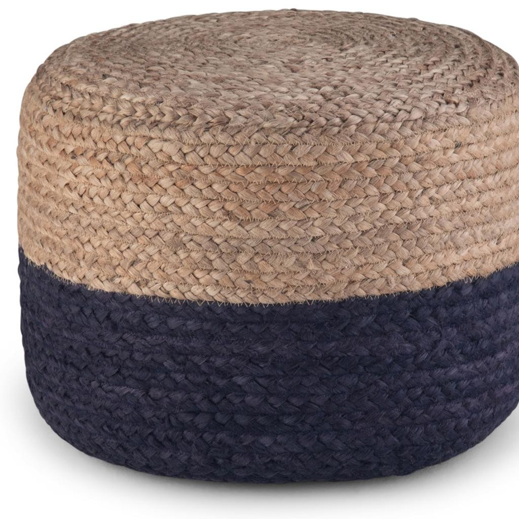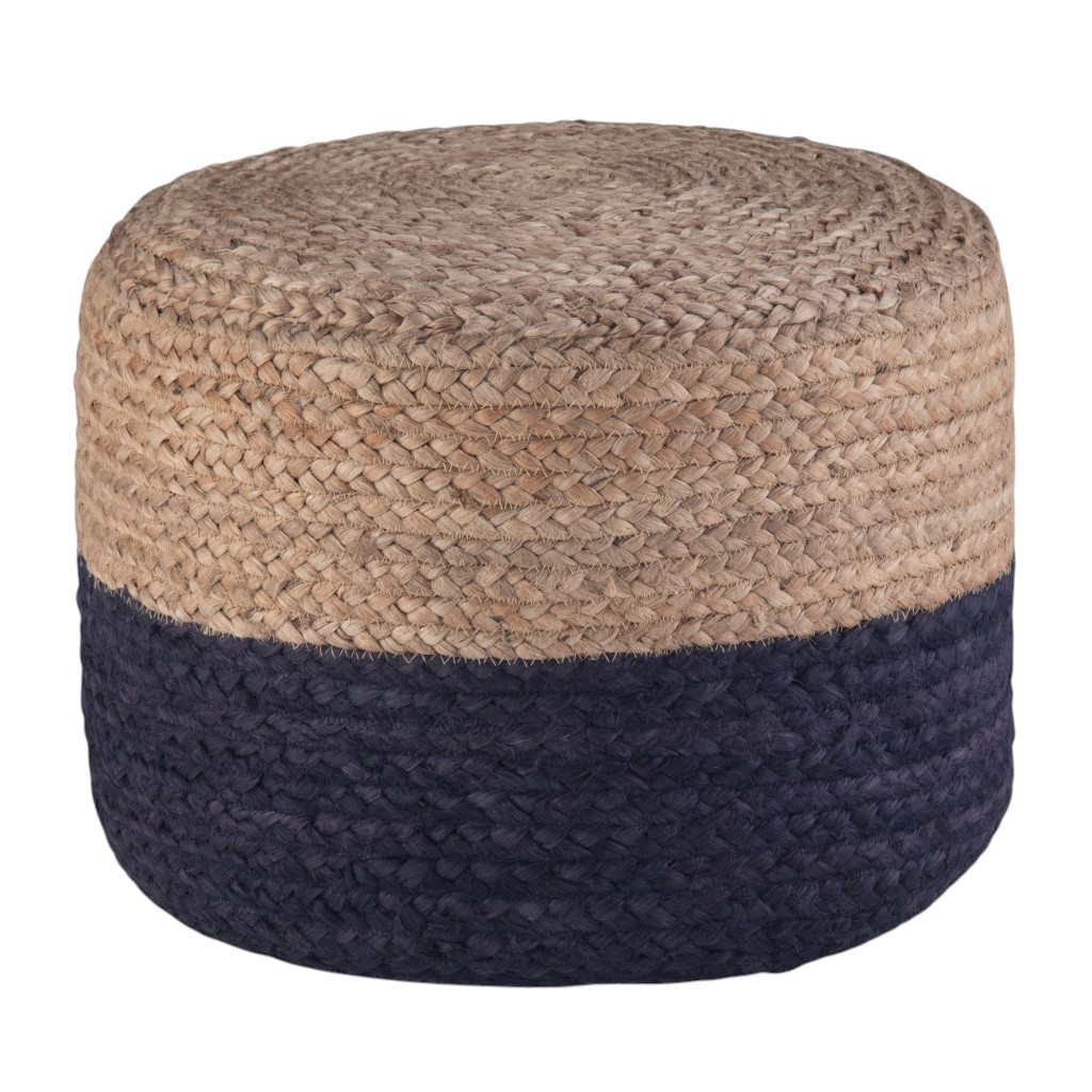 blue jute round pouf ottoman, jute round pouf ottoman, round pouf ottoman, 18" blue jute round pouf, 18" blue jute round |