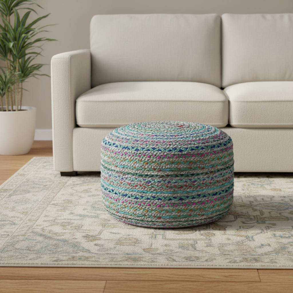 green jute round pouf ottoman, jute round pouf ottoman, round pouf ottoman, 20" green jute round pouf, 20" green jute round |