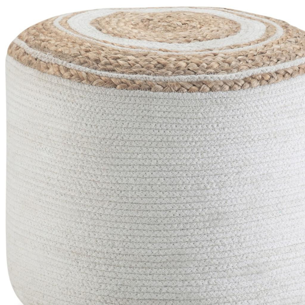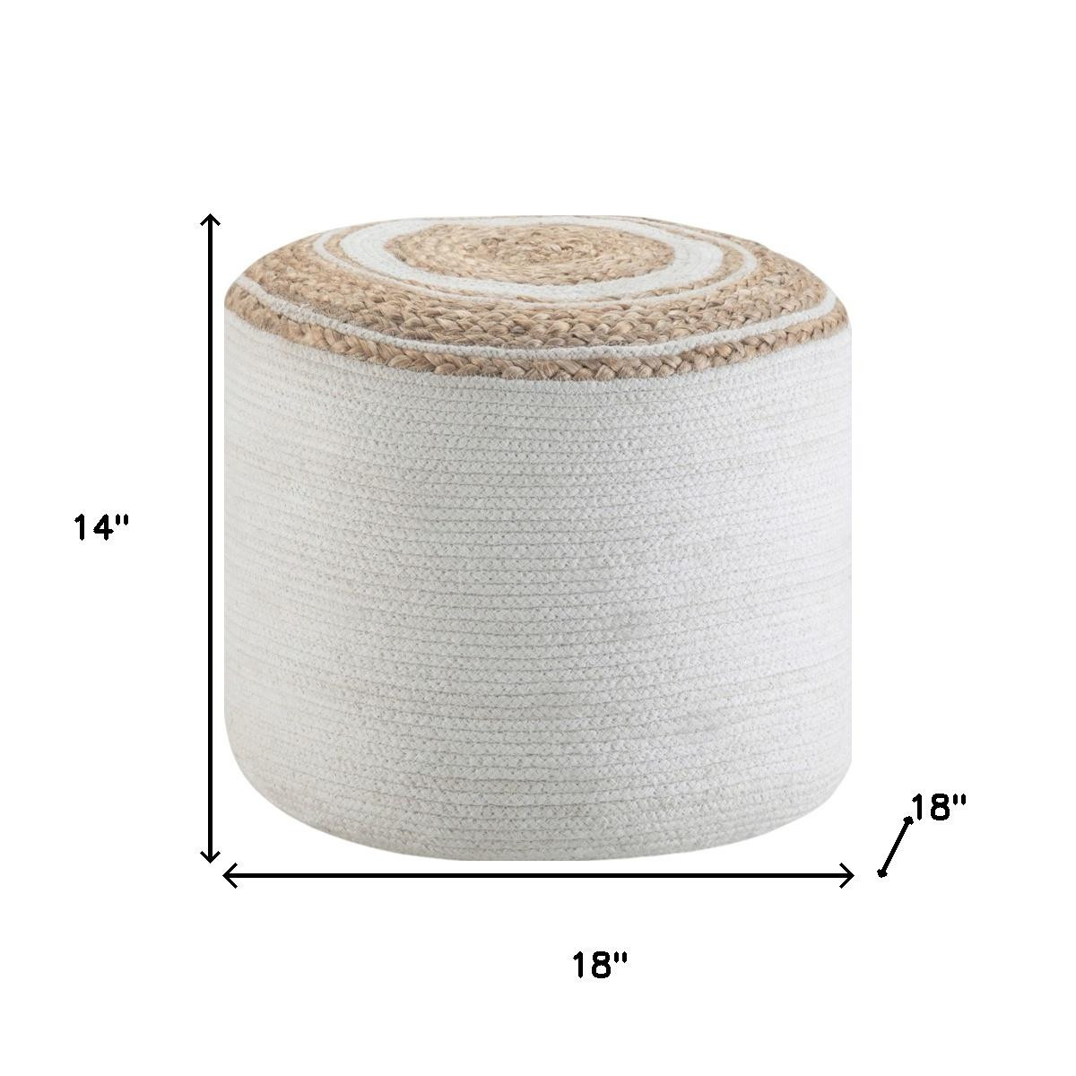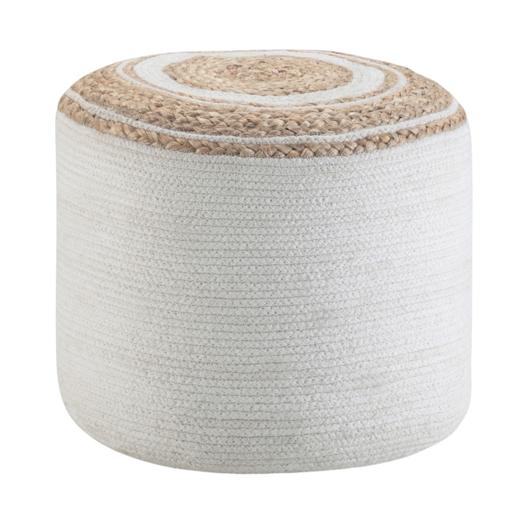 Optimize your space and add some charm to your room with the 18-inch off white cotton round pouf ottoman. Add chic style to your space with this fun pouf that not only looks cool but can be a great foot rest or extra seat when needed. The upholstery top of this ottoman is a nice contrast to the upholstery material. Expertly upholstered with padding in a soft solid color cotton, this ottoman is as comfortable as it is good looking. Easy to blend into most any room, a ottoman is a way to add a good looking accent to your space that can also be practical and useful. 14.00-inch h x 18.00-inch w x 18.00-inch d.