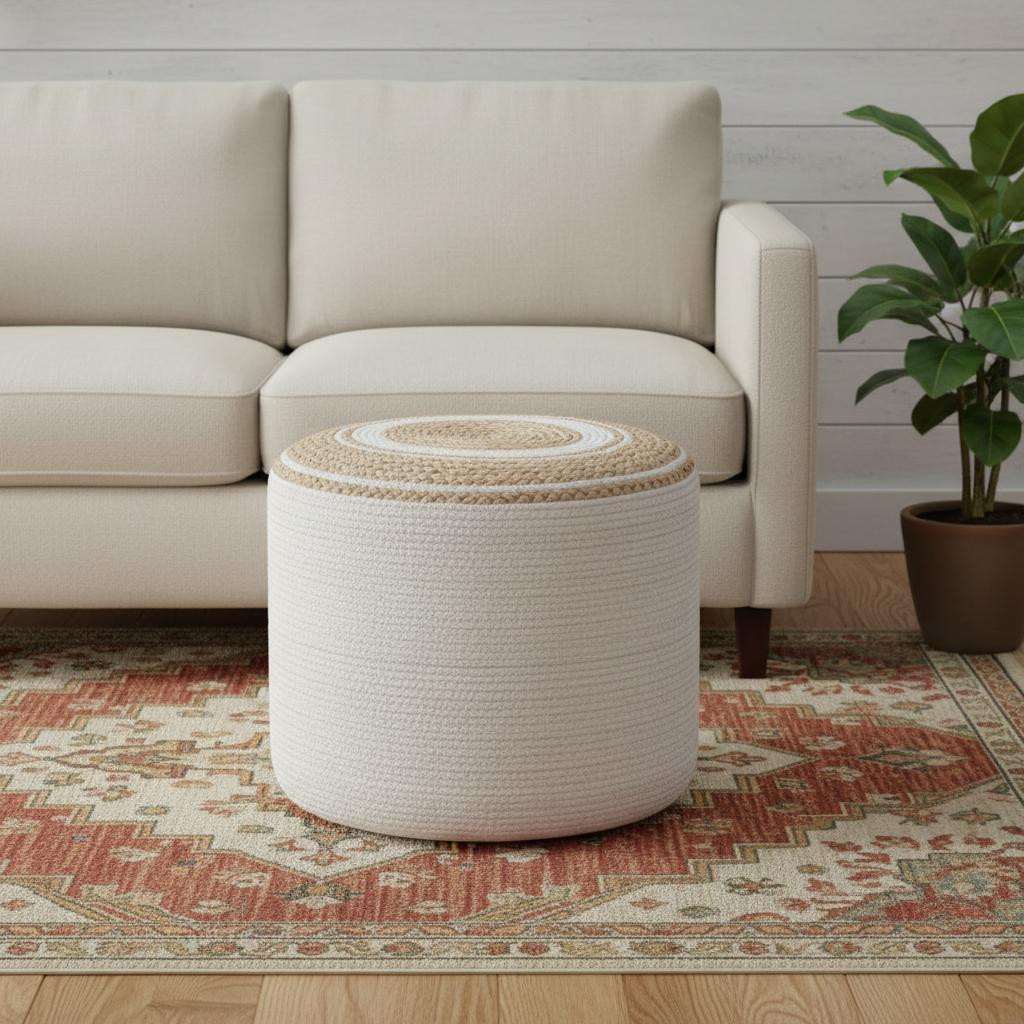 white cotton round pouf ottoman, cotton round pouf ottoman, round pouf ottoman, 18" white cotton round pouf, 18" white cotton round |