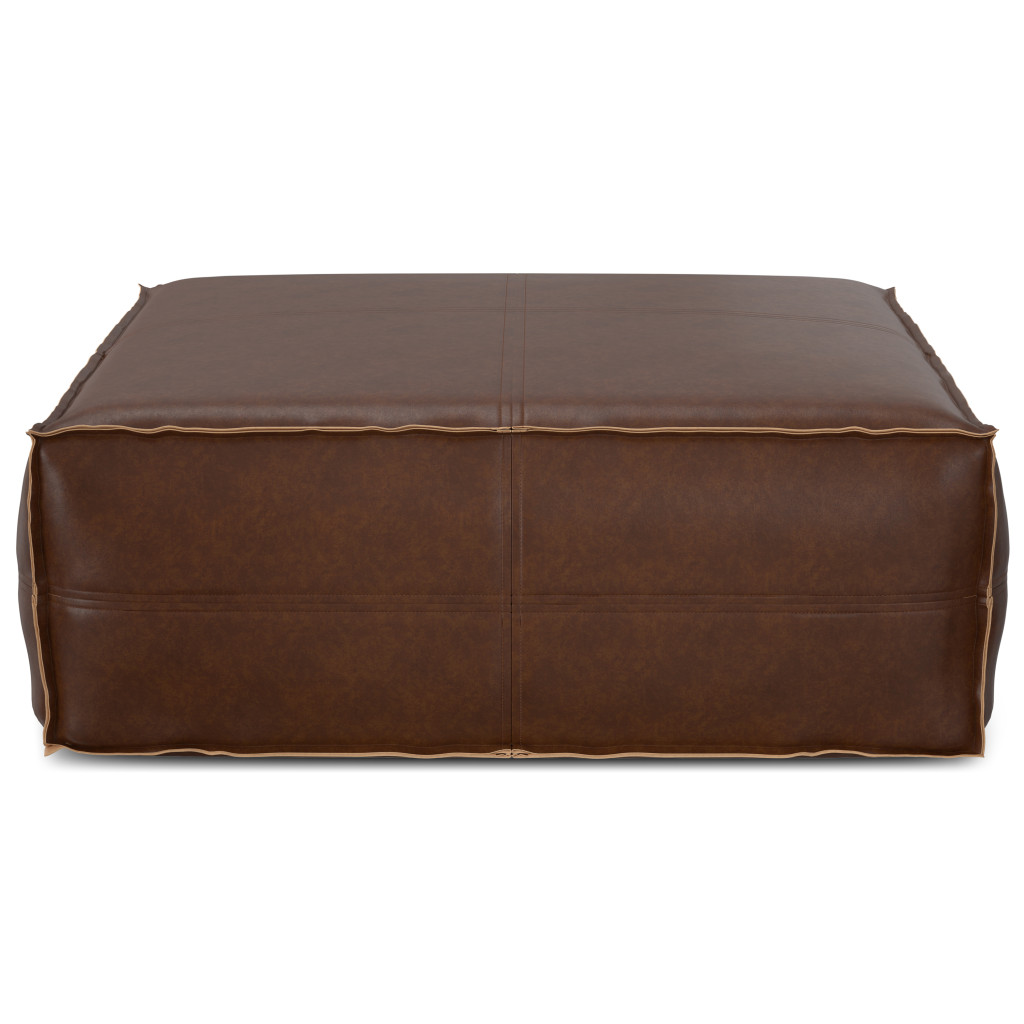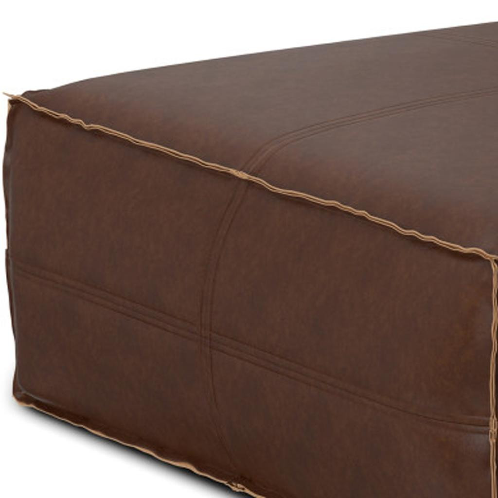 brown faux leather pouf ottoman, faux leather pouf ottoman, leather pouf ottoman, 36" brown faux leather pouf, 36" brown faux leather |