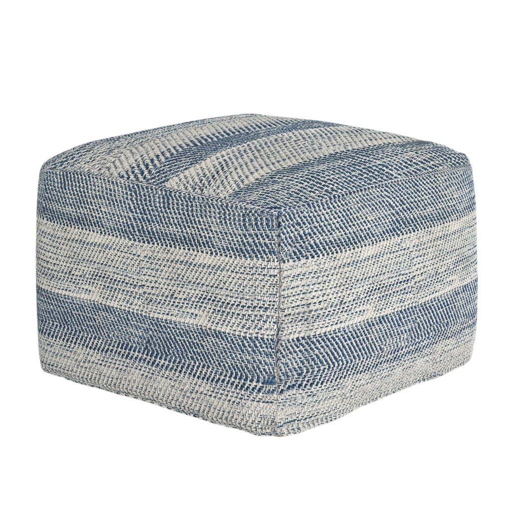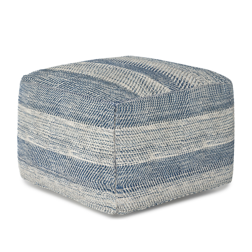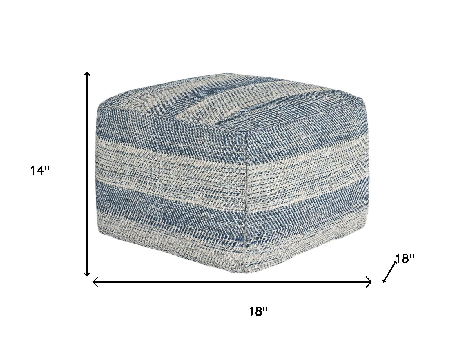 Optimize your space and add some charm to your room with the 18-inch teal blue and white cotton striped pouf ottoman. Add chic style to your space with this fun pouf that not only looks cool but can be a great foot rest or extra seat when needed. Expertly upholstered with padding and soft cotton in a striped pattern, this ottoman is as comfortable as it is good looking. Ottomans are multi-functional additions to your space that add fashion and practical value. 14.00-inch h x 18.00-inch w x 18.00-inch d.