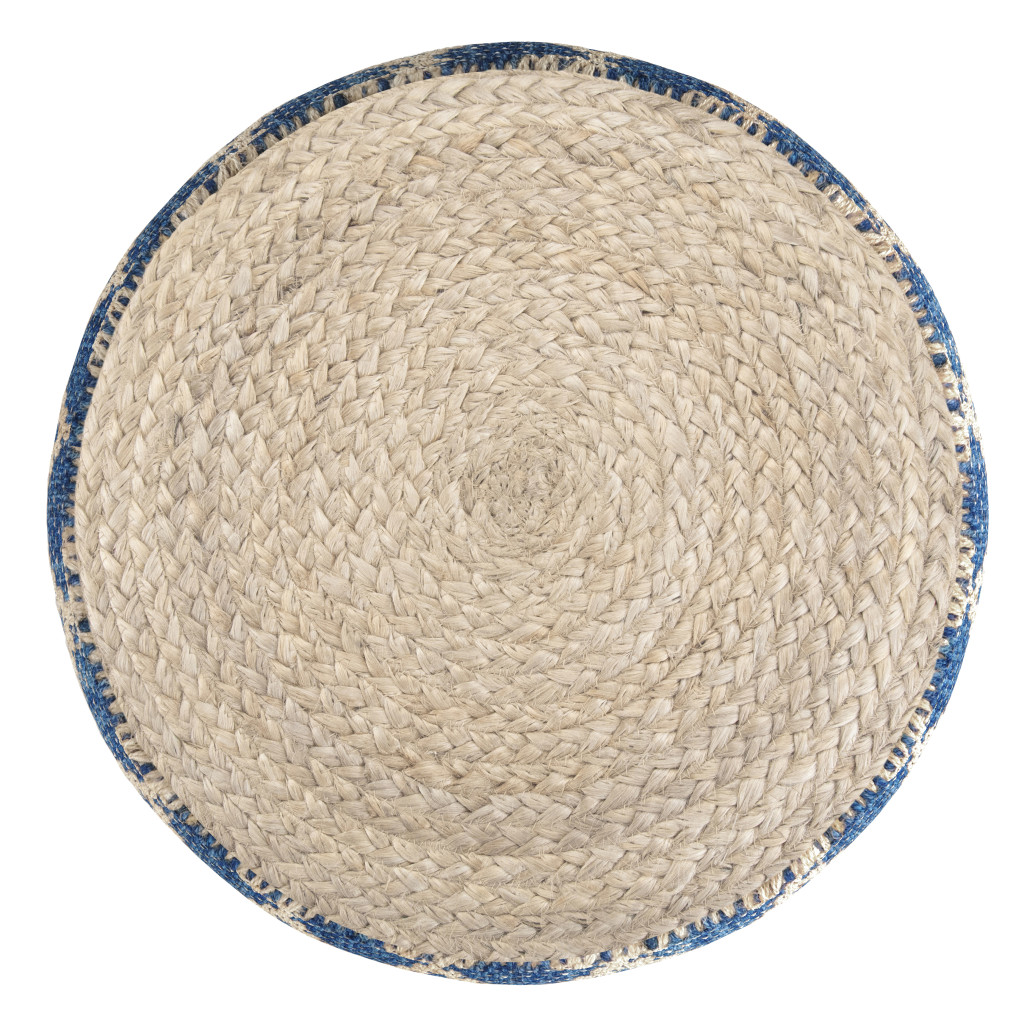 blue jute round pouf ottoman, jute round pouf ottoman, round pouf ottoman, 18" blue jute round pouf, 18" blue jute round |