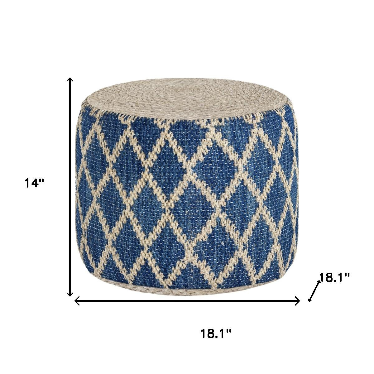 Get ready to relax with this 18-inch blue jute round pouf ottoman. Add chic style to your space with this fun pouf that not only looks cool but can be a great foot rest or extra seat when needed. The upholstery top of this ottoman is a nice contrast to the upholstery material. Expertly upholstered with padding in a soft solid color jute, this ottoman is as comfortable as it is good looking. Easy to blend into most any room, a ottoman is a way to add a good looking accent to your space that can also be practical and useful. 14.00-inch h x 18.10-inch w x 18.10-inch d.