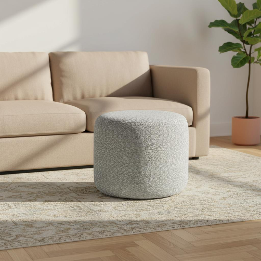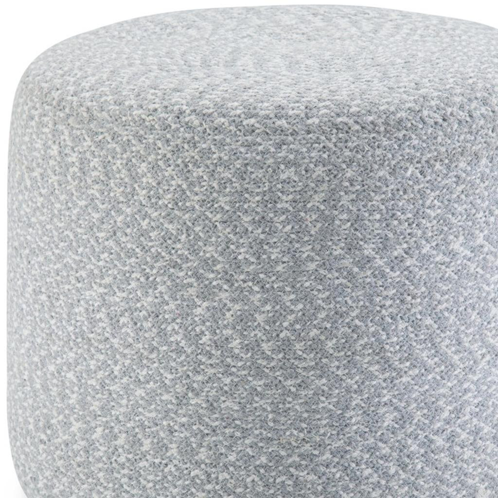 Get ready to relax with this 20-inch blue cotton round pouf ottoman. Add chic style to your space with this fun pouf that not only looks cool but can be a great foot rest or extra seat when needed. The upholstery top of this ottoman is a nice contrast to the upholstery material. Expertly upholstered with padding in a soft solid color cotton, this ottoman is as comfortable as it is good looking. Easy to blend into most any room, a ottoman is a way to add a good looking accent to your space that can also be practical and useful. 14.00-inch h x 20.00-inch w x 20.00-inch d.