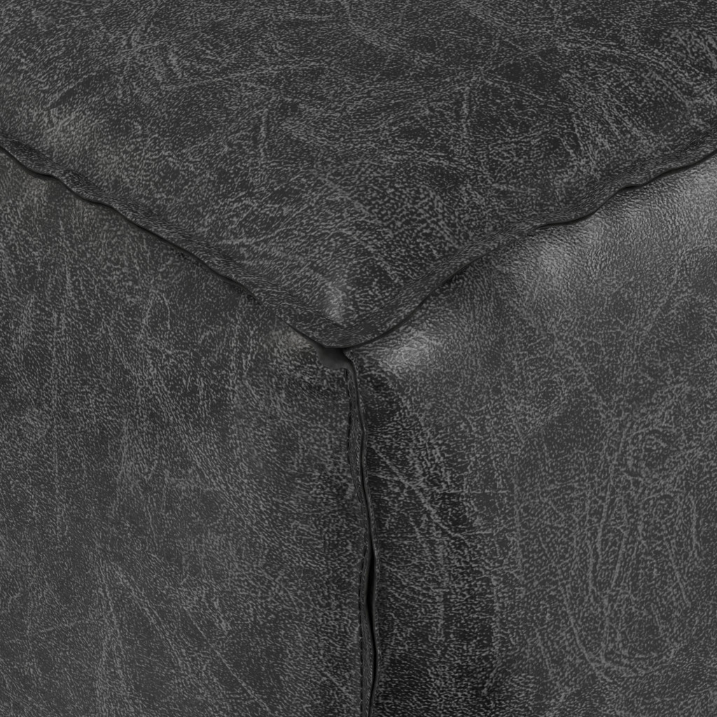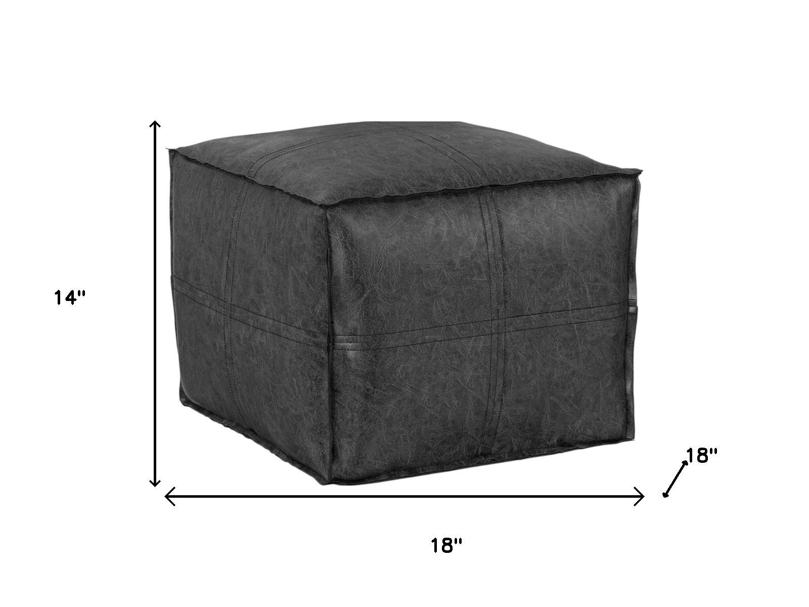 Add a good looking decorative accent to your space that is also practical for seating. Add chic style to your space with this fun pouf that not only looks cool but can be a great foot rest or extra seat when needed. Complete with a purposefully distressed finish, this ottoman has an aged, vintage, and rustic feel. Expertly upholstered with padding in a soft solid color faux leather, this ottoman is as comfortable as it is good looking. Ottomans are multi-functional additions to your space that add fashion and practical value. 14.00-inch h x 18.00-inch w x 18.00-inch d.