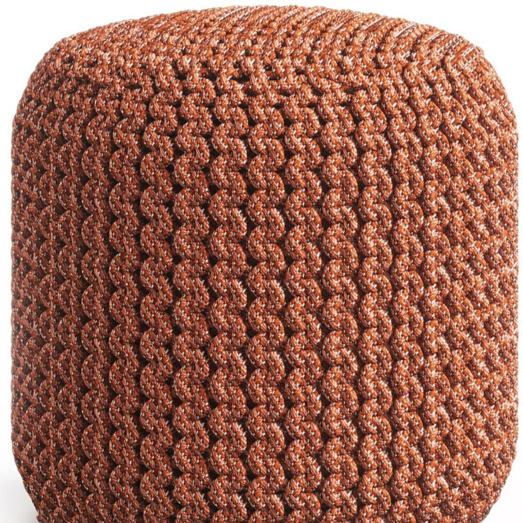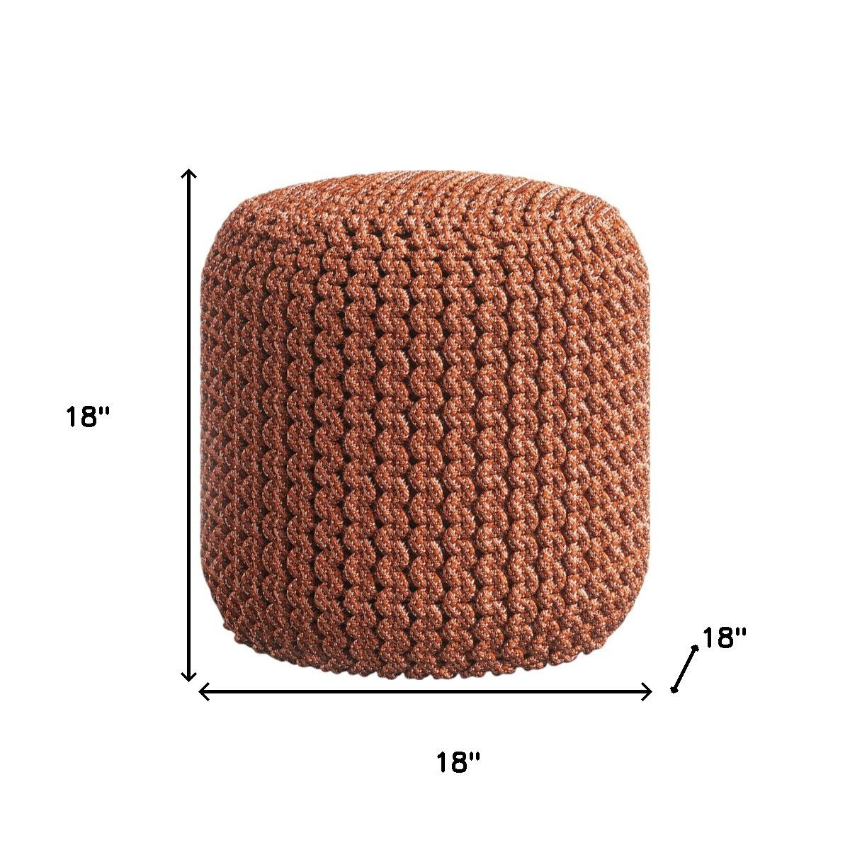 Get ready to relax with this 18-inch orange fabric round pouf ottoman. Add chic style to your space with this fun pouf that not only looks cool but can be a great foot rest or extra seat when needed. The upholstery top of this ottoman is a nice contrast to the upholstery material. Expertly upholstered with padding in a soft solid color polyester, this ottoman is as comfortable as it is good looking. Ottomans are multi-functional additions to your space that add fashion and practical value. 18.00-inch h x 18.00-inch w x 18.00-inch d.