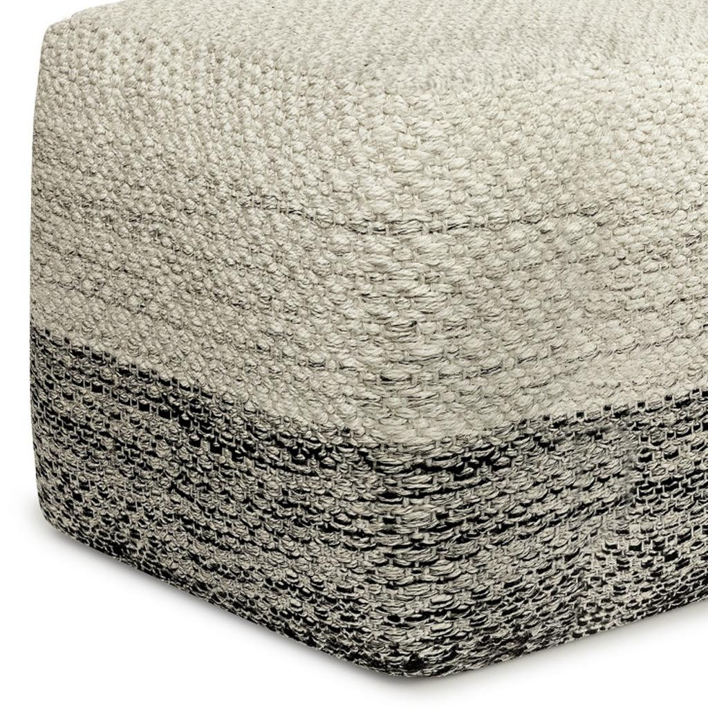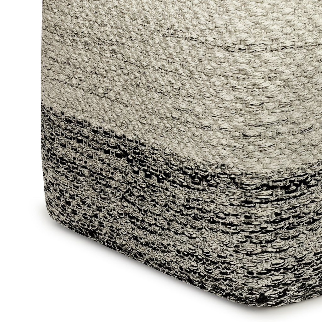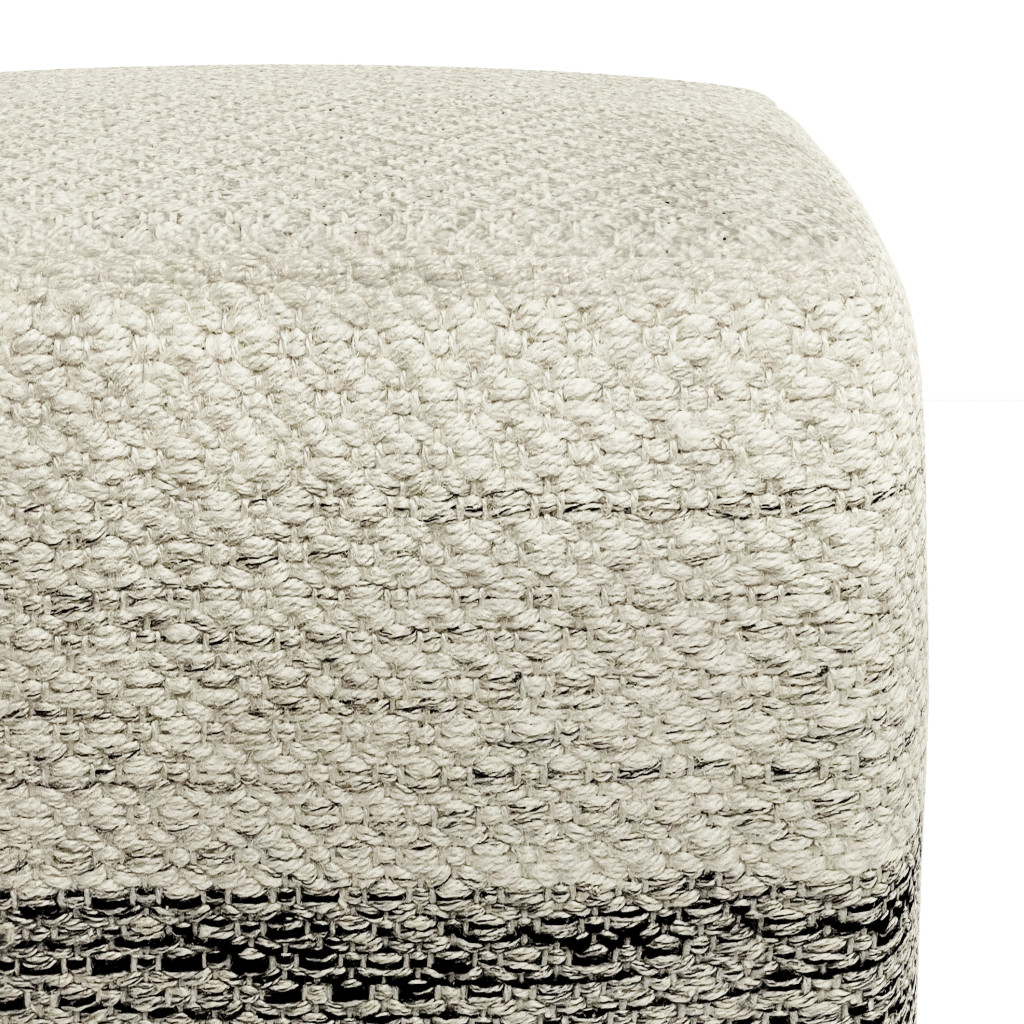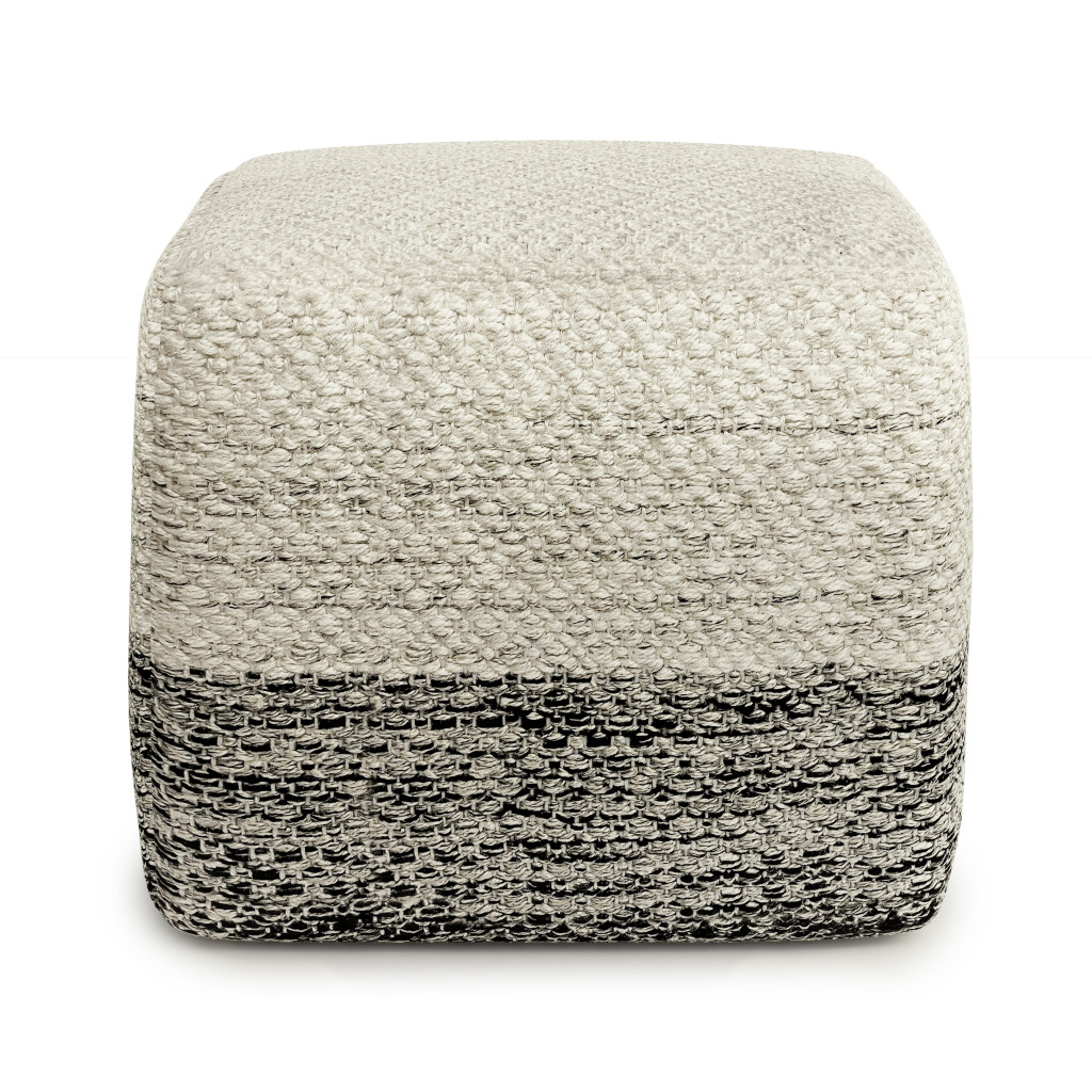 Add a good looking decorative accent to your space that is also practical for seating. Add chic style to your space with this fun pouf that not only looks cool but can be a great foot rest or extra seat when needed. The upholstery top of this ottoman is a nice contrast to the upholstery material. Expertly upholstered with padding in a soft solid color polyester, this ottoman is as comfortable as it is good looking. Easy to blend into most any room, a ottoman is a way to add a good looking accent to your space that can also be practical and useful. 14.00-inch h x 18.00-inch w x 18.00-inch d.