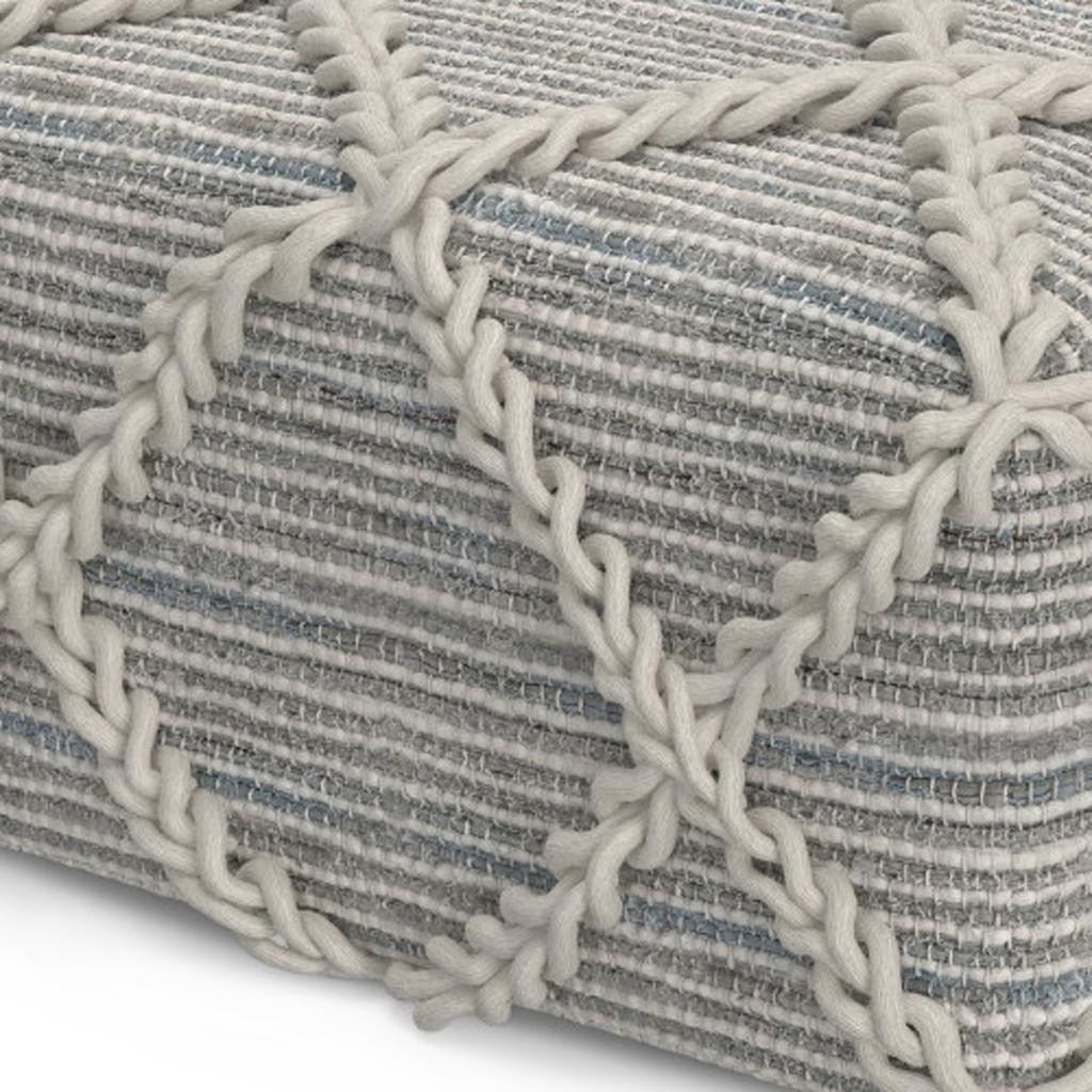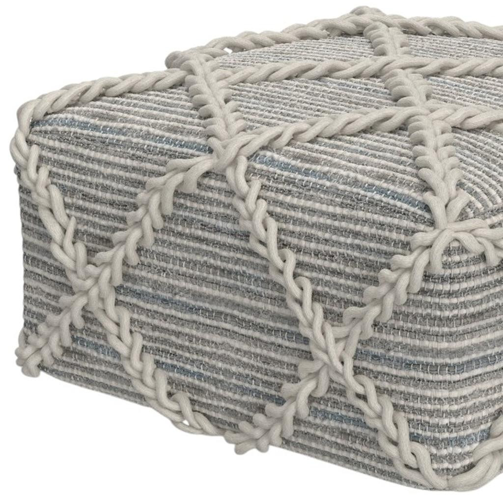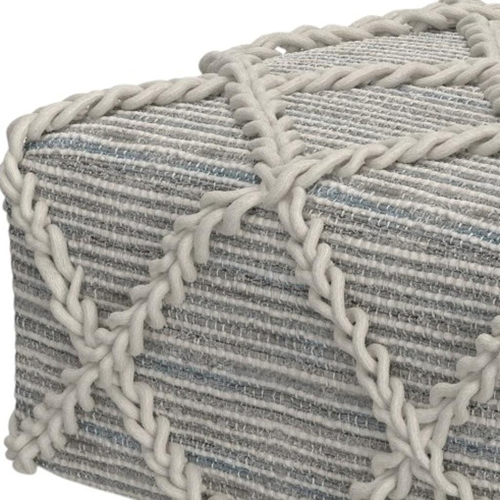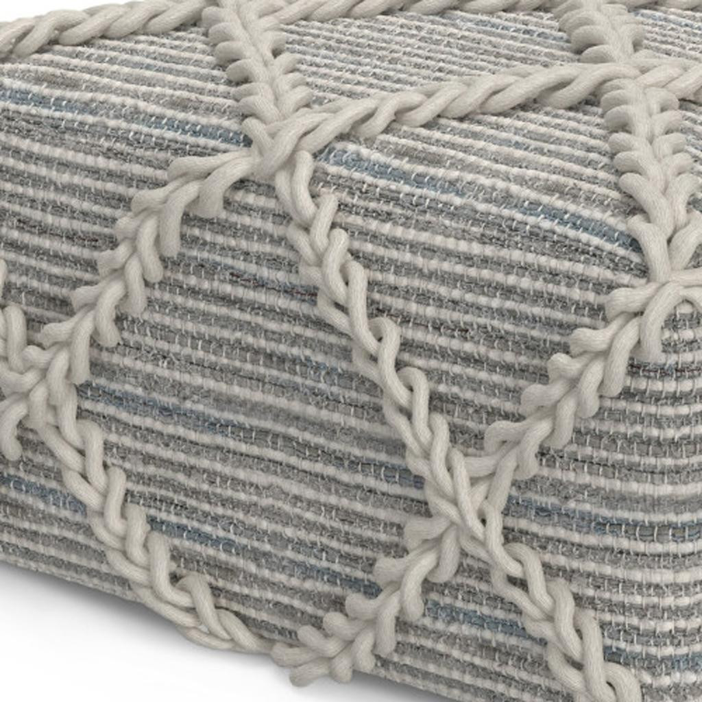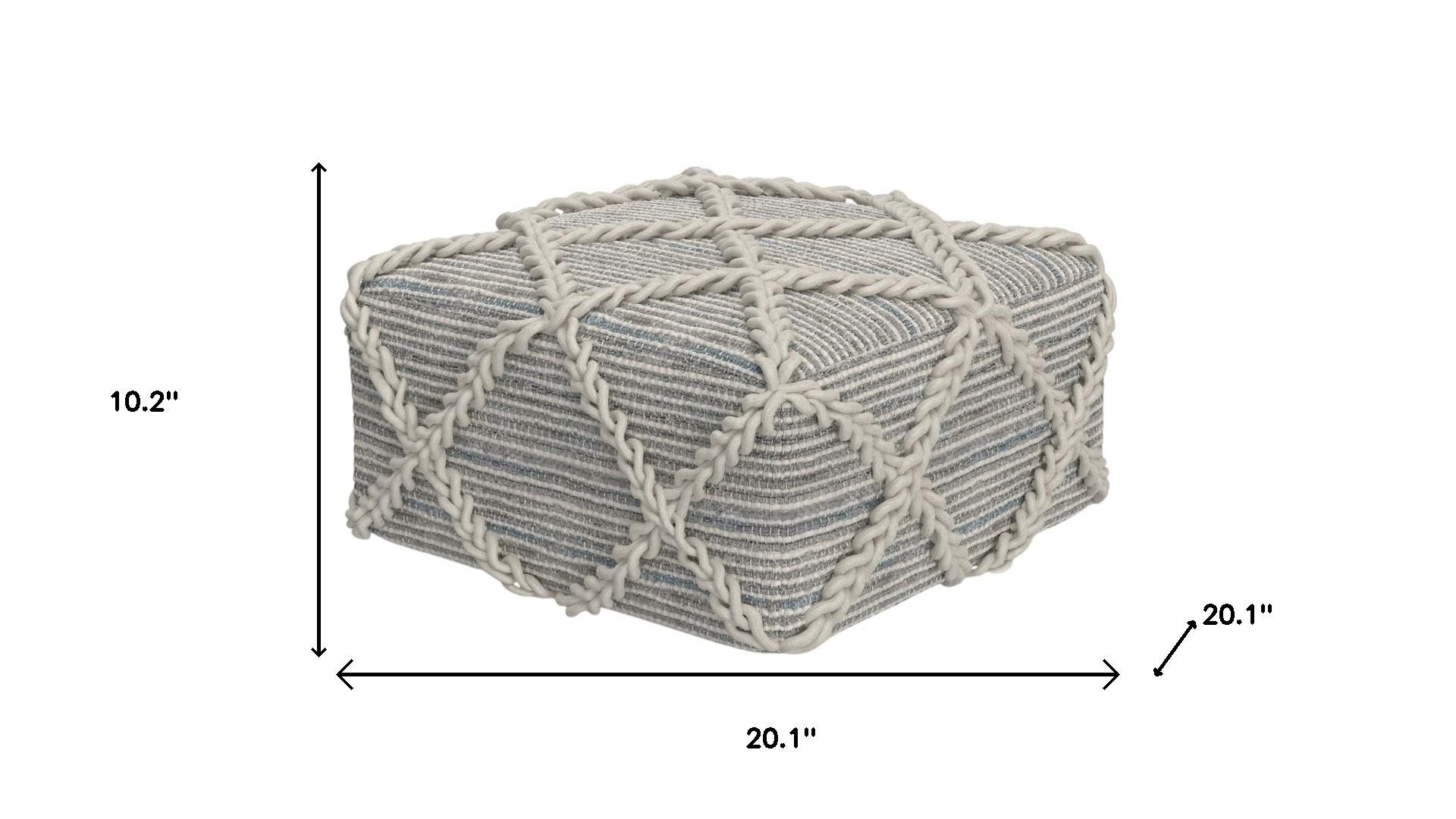 Get ready to relax with this 20-inch gray wool pouf ottoman. Add chic style to your space with this fun pouf that not only looks cool but can be a great foot rest or extra seat when needed. The upholstery top of this ottoman is a nice contrast to the upholstery material. Expertly upholstered with padding in a soft solid color wool, this ottoman is as comfortable as it is good looking. Easy to blend into most any room, a ottoman is a way to add a good looking accent to your space that can also be practical and useful. 10.20-inch h x 20.10-inch w x 20.10-inch d.