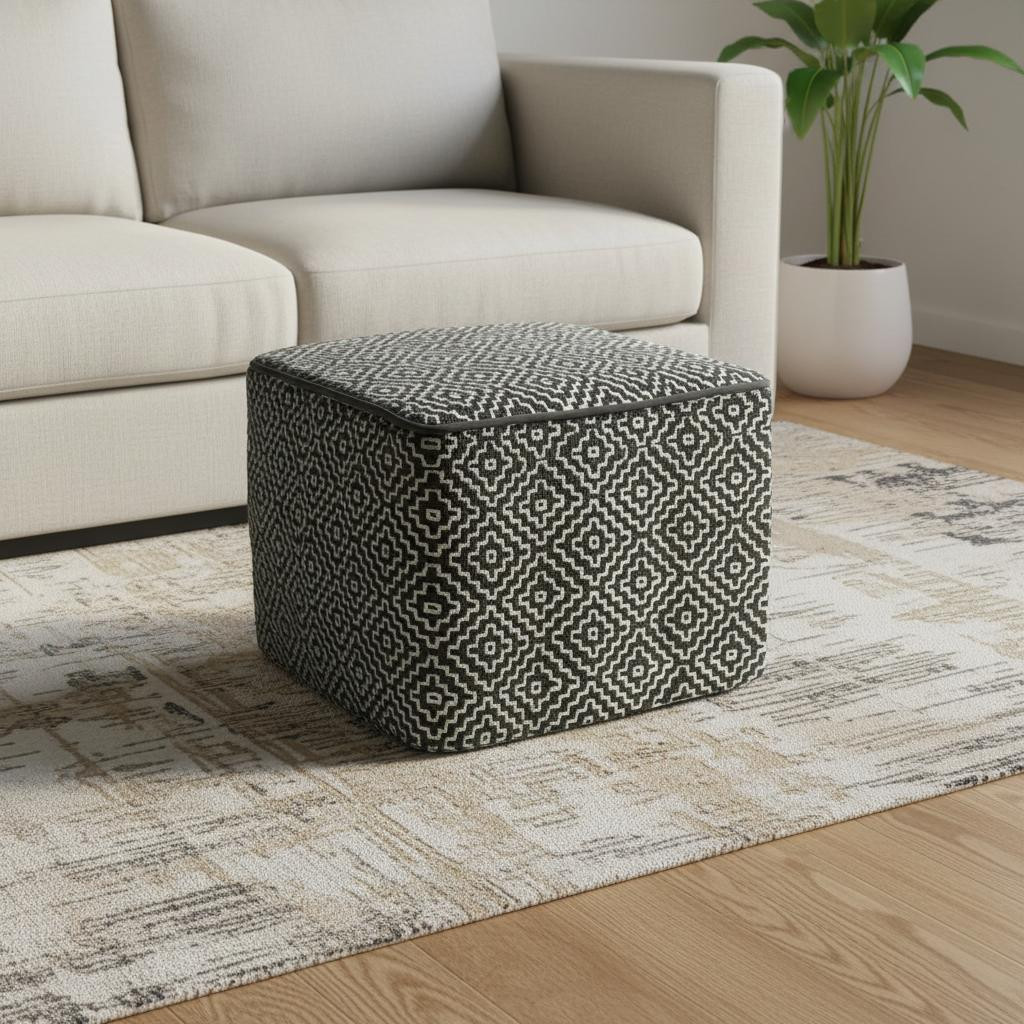 Optimize your space and add some charm to your room with the 18-inch gray fabric pouf ottoman. Add chic style to your space with this fun pouf that not only looks cool but can be a great foot rest or extra seat when needed. The upholstery top of this ottoman is a nice contrast to the upholstery material. Expertly upholstered with padding in a soft solid color polyester, this ottoman is as comfortable as it is good looking. Easy to blend into most any room, a ottoman is a way to add a good looking accent to your space that can also be practical and useful. 14.00-inch h x 18.00-inch w x 18.00-inch d.