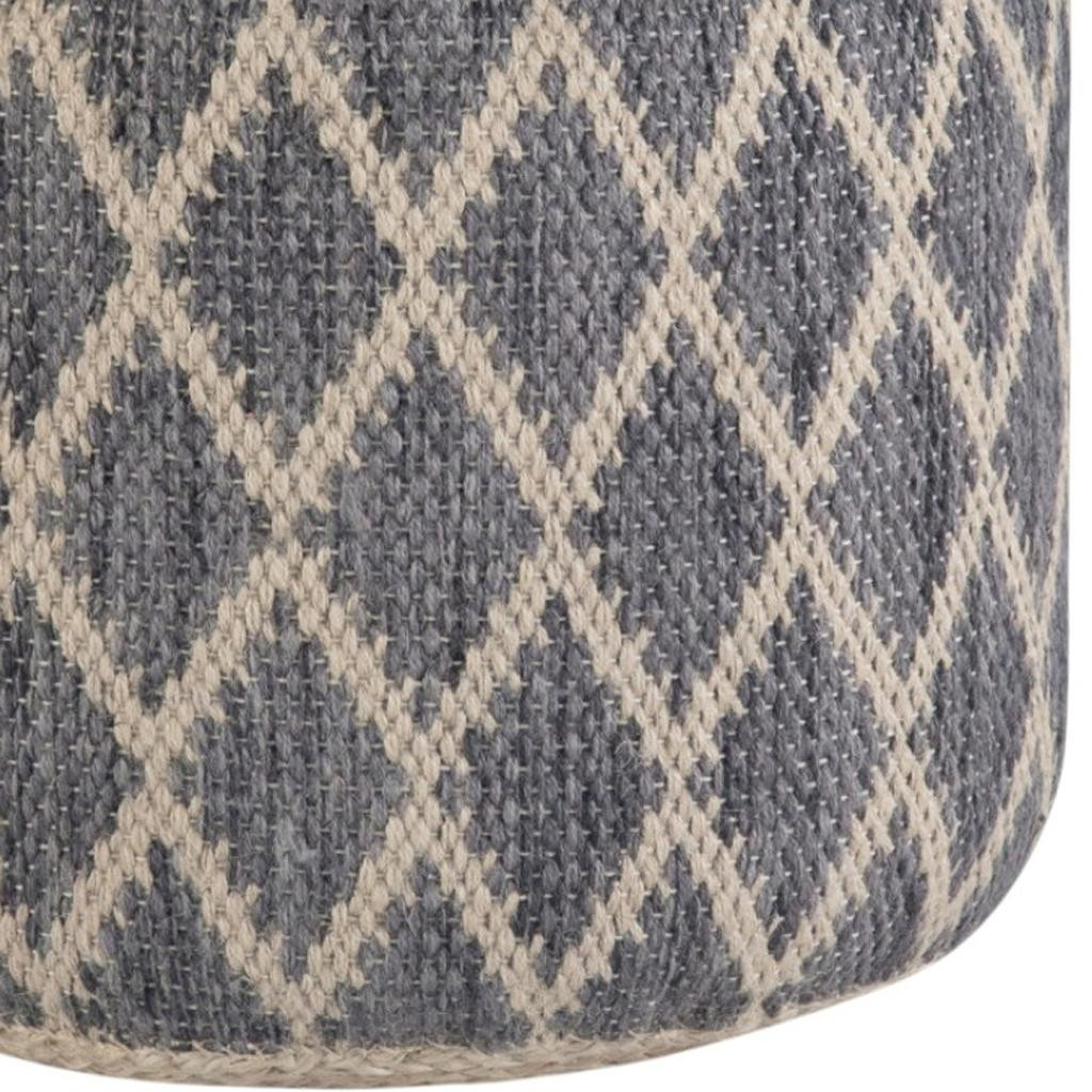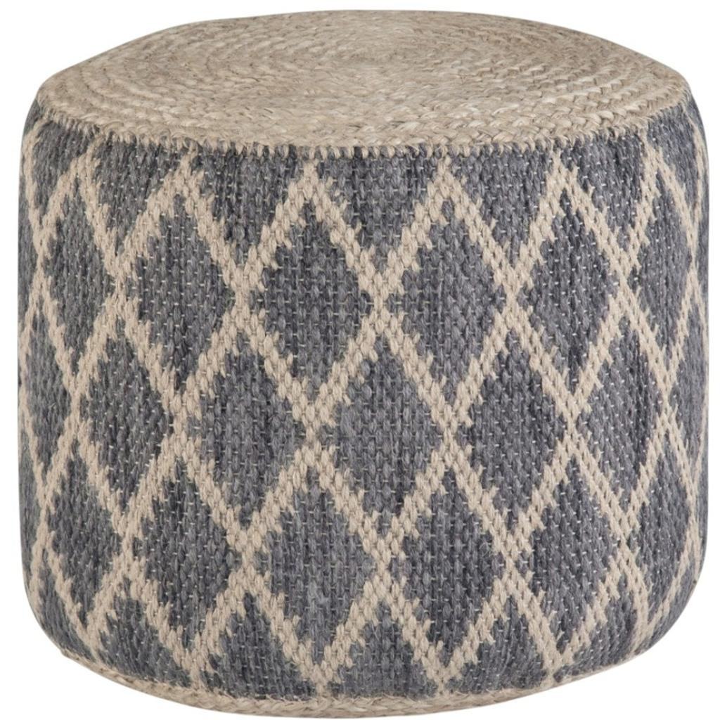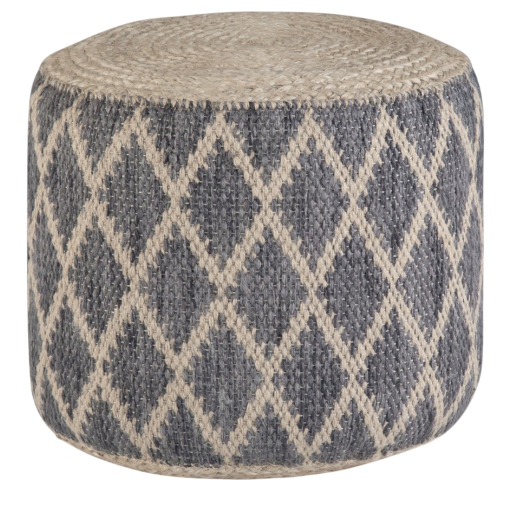 Add a good looking decorative accent to your space that is also practical for seating. Add chic style to your space with this fun pouf that not only looks cool but can be a great foot rest or extra seat when needed. The upholstery top of this ottoman is a nice contrast to the upholstery material. Expertly upholstered with padding in a soft solid color jute, this ottoman is as comfortable as it is good looking. Ottomans are multi-functional additions to your space that add fashion and practical value. 14.00-inch h x 18.10-inch w x 18.10-inch d.