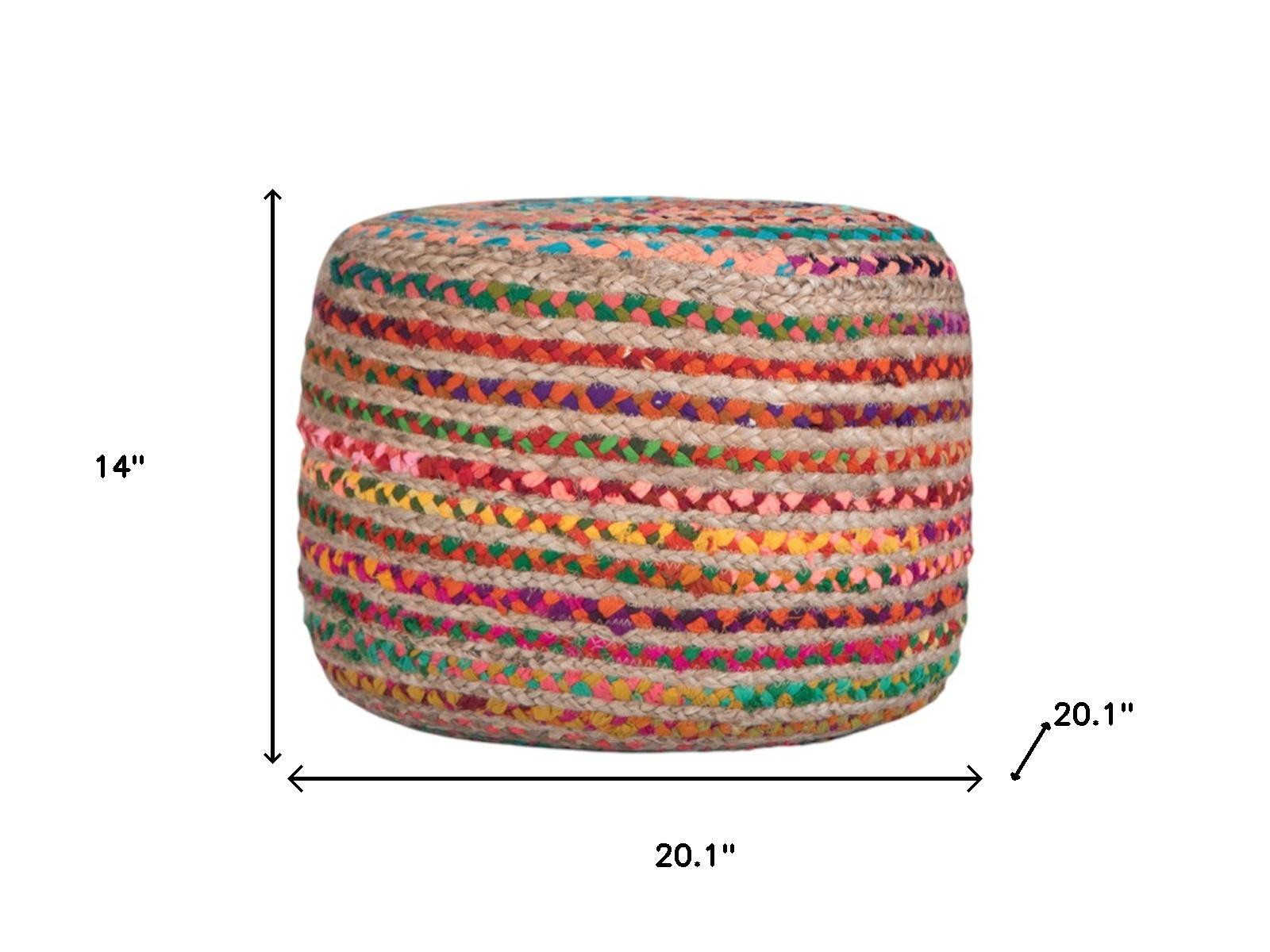 Optimize your space and add some charm to your room with the 20-inch blue jute round pouf ottoman. Add chic style to your space with this fun pouf that not only looks cool but can be a great foot rest or extra seat when needed. The upholstery top of this ottoman is a nice contrast to the upholstery material. Expertly upholstered with padding in a soft solid color jute, this ottoman is as comfortable as it is good looking. Ottomans are multi-functional additions to your space that add fashion and practical value. 14.00-inch h x 20.10-inch w x 20.10-inch d.
