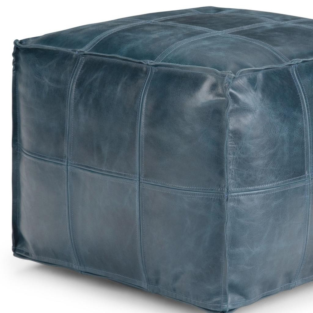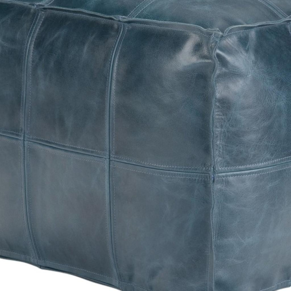 18" blue leather pouf ottoman, blue leather pouf ottoman, leather pouf ottoman, 18" blue leather pouf, 18" blue leather |