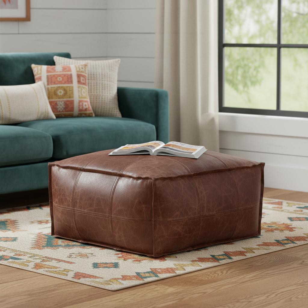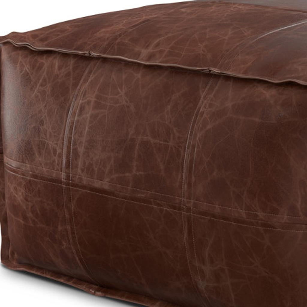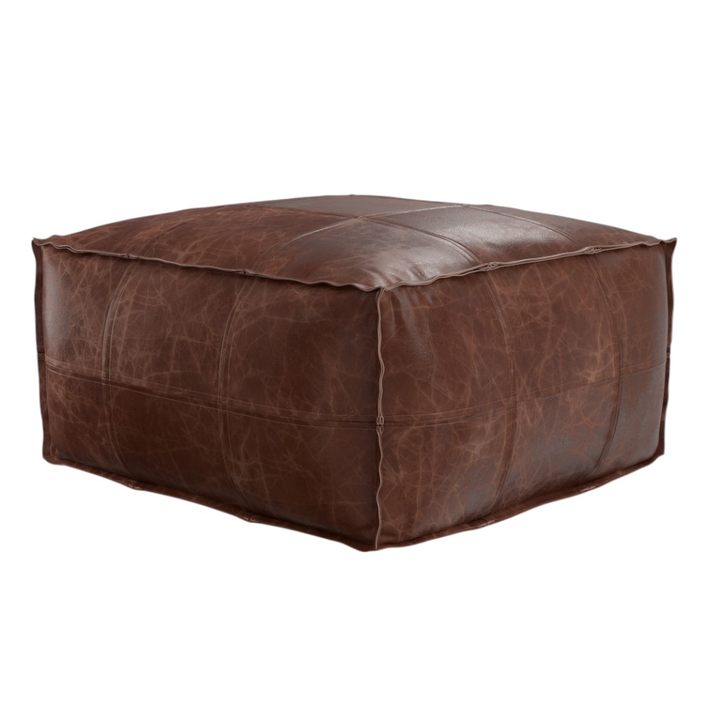 26" brown leather pouf ottoman, brown leather pouf ottoman, leather pouf ottoman, 26" brown leather pouf, 26" brown leather |