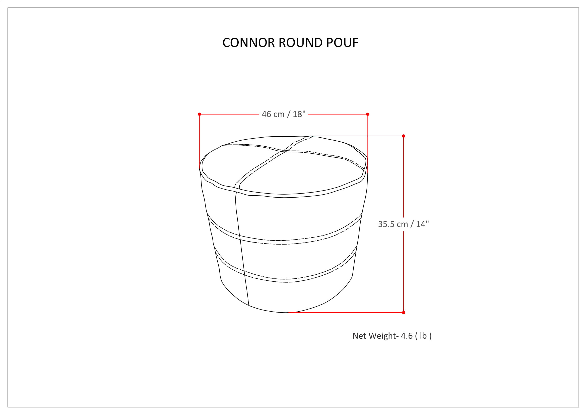 Practicality and fashion mix together with this handy 18-inch black leather round pouf ottoman. Add chic style to your space with this fun pouf that not only looks cool but can be a great foot rest or extra seat when needed. The upholstery top of this ottoman is a nice contrast to the upholstery material. Expertly upholstered with padding in a soft solid color leather, this ottoman is as comfortable as it is good looking. Ottomans are multi-functional additions to your space that add fashion and practical value. 14.00-inch h x 18.00-inch w x 18.00-inch d.