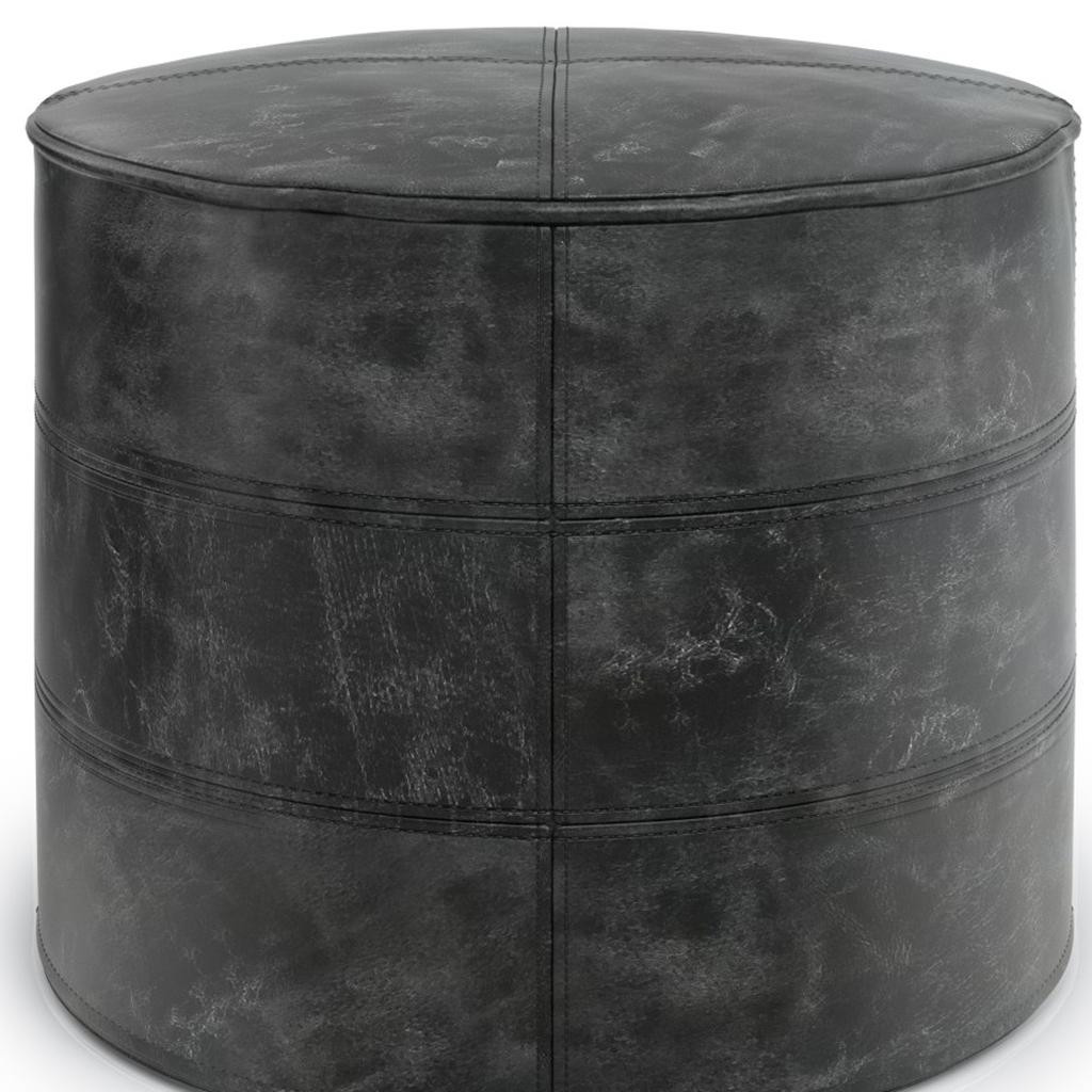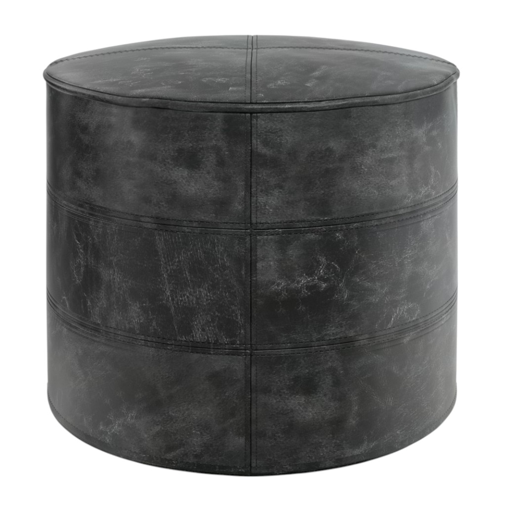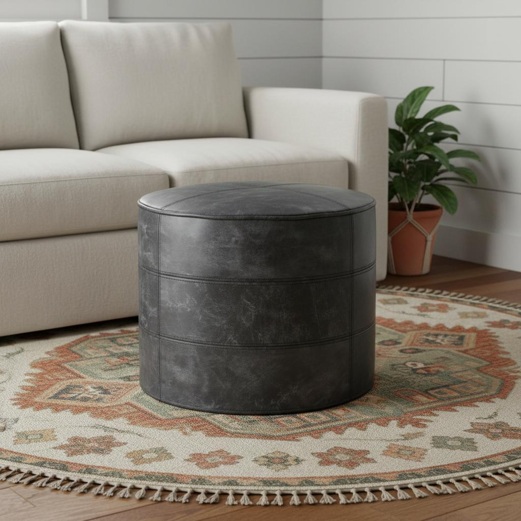 black leather round pouf ottoman, leather round pouf ottoman, round pouf ottoman, 18" black leather round pouf, 18" black leather round |