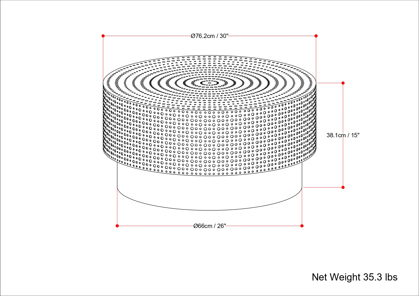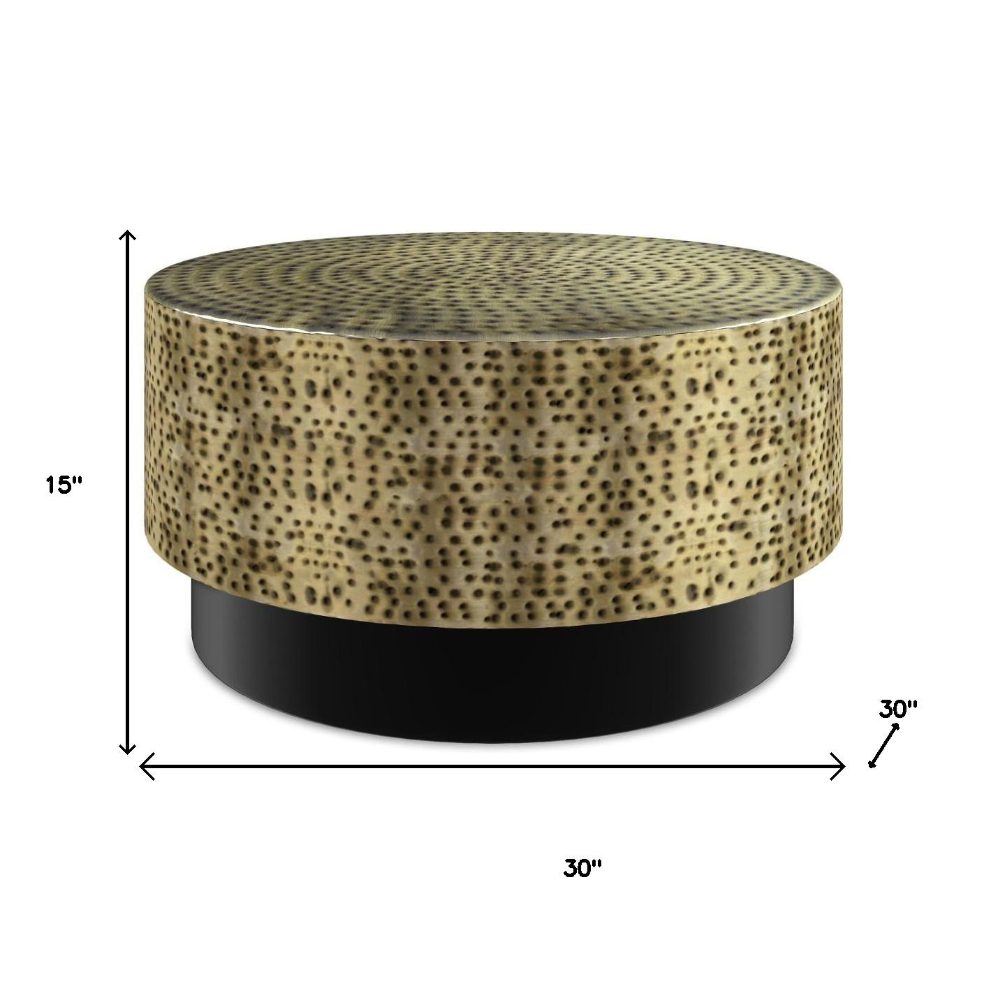 Give your living room, family room, or office the perfect anchor piece with this 30-inch black iron round solid coffee table. This table features quality construction from iron and an updated monotone color scheme with black as the main color on both the top and the base. If you're looking for something that can fit into a living area, bedroom, or office, this coffee table is for you. 15.00-inch h x 30.00-inch w x 30.00-inch d.