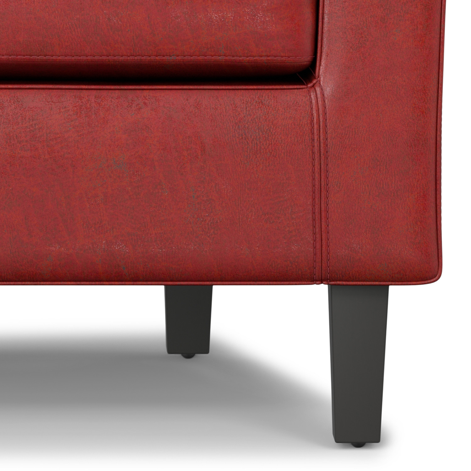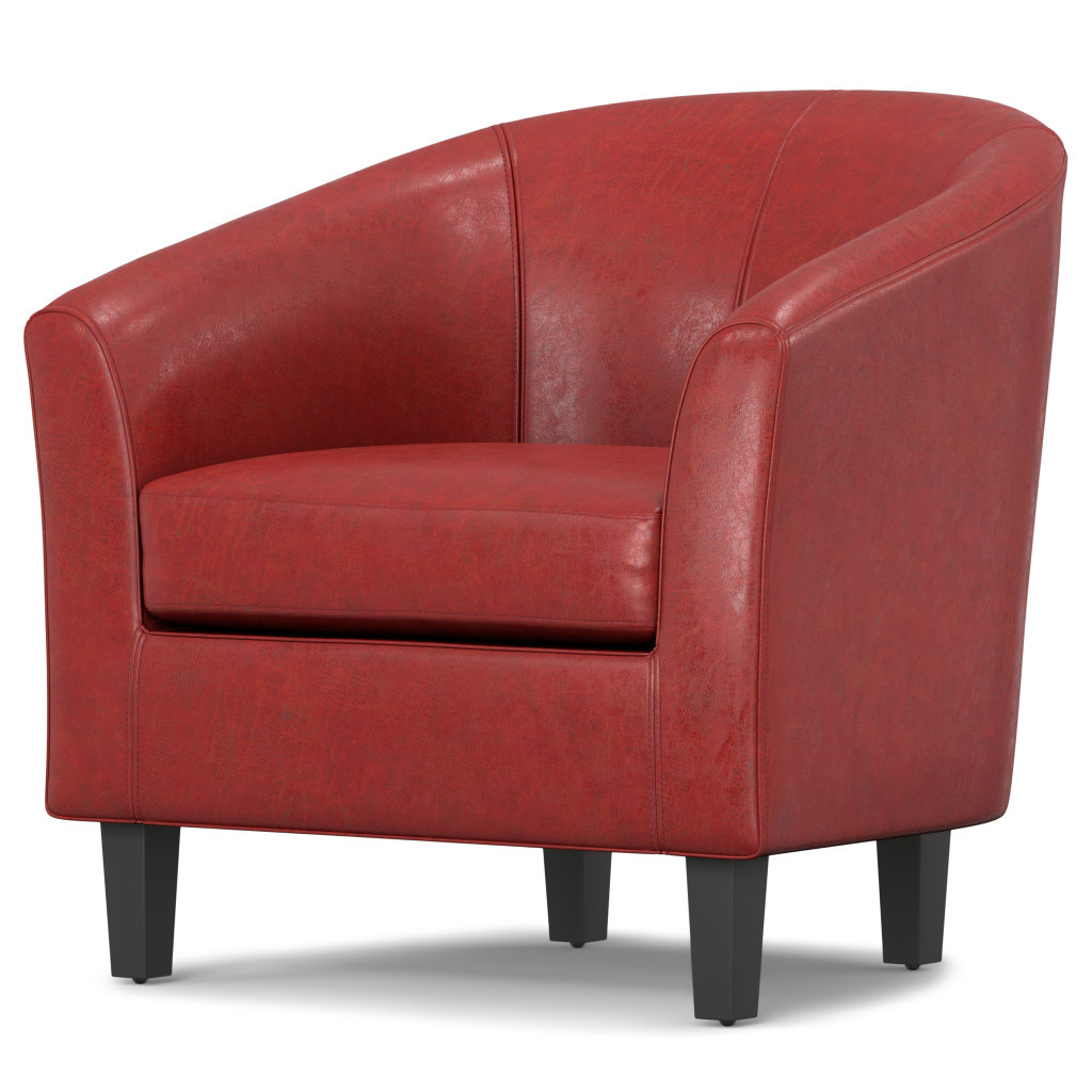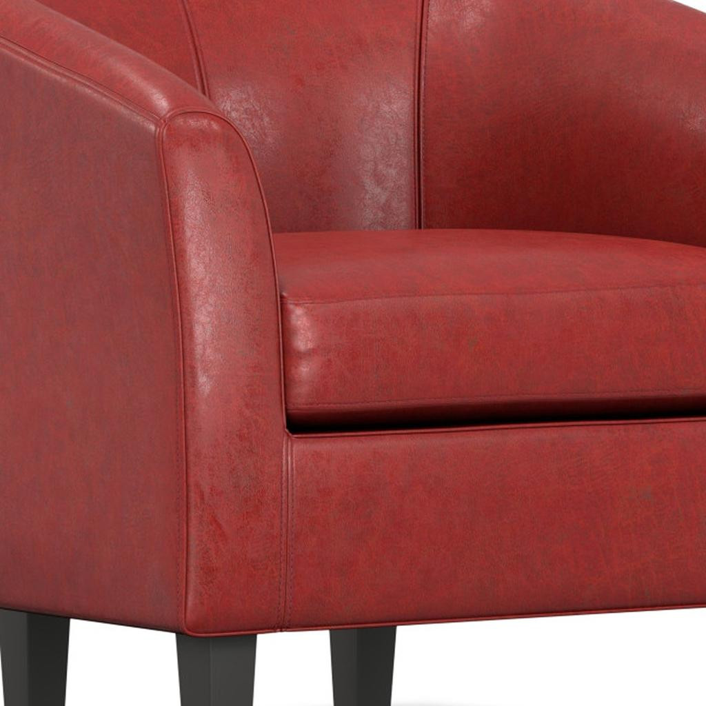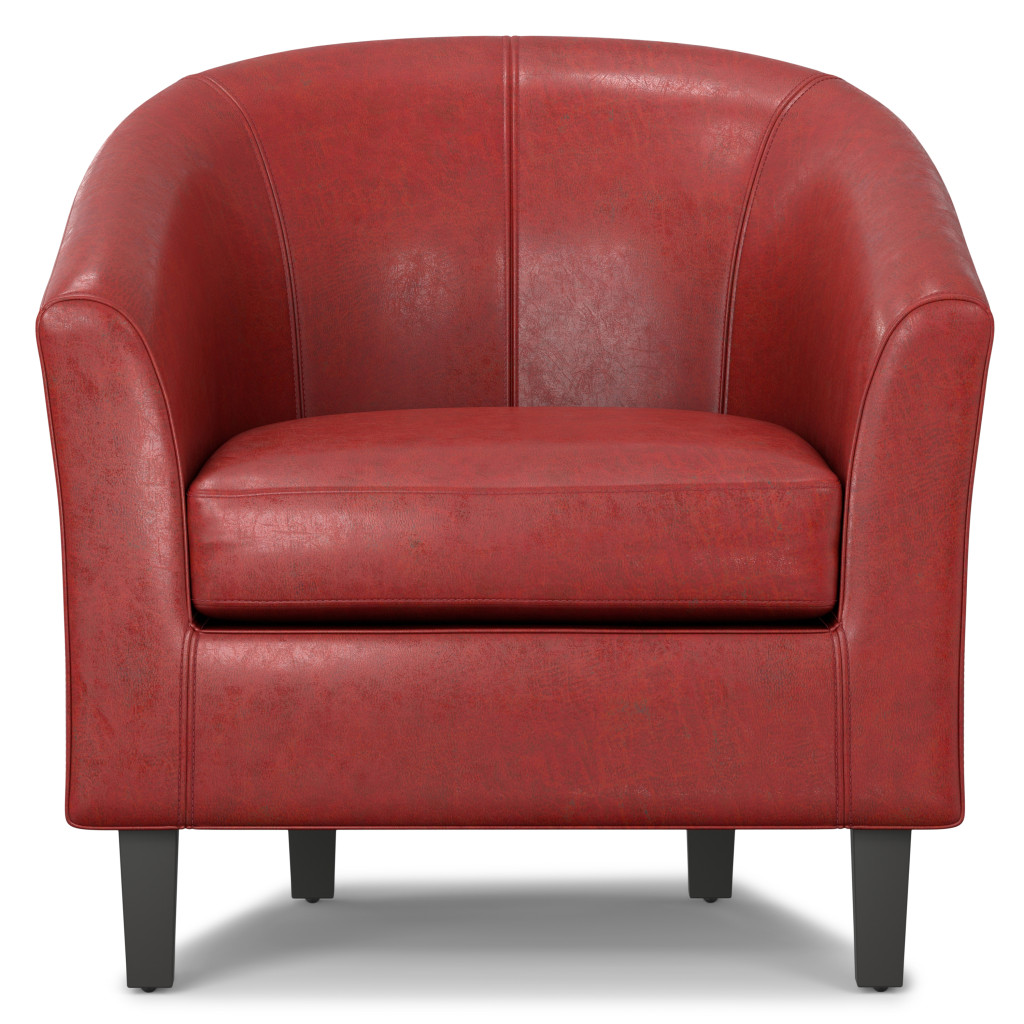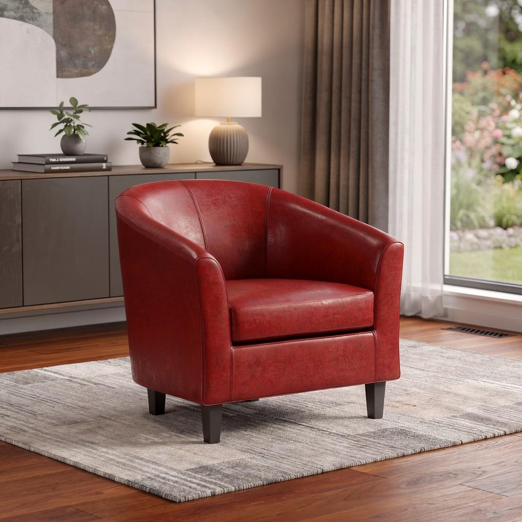 This 30-inch red and dark brown leather arm chair will add a beautiful decorative accent to your decor. This sturdy leather upholstered arm chair comes in a chic solid red color to give your space just the right look. The high quality manufactured wood inner frame flaunts convenient armrests and a fixed back that are complimented by soft and comfortable cushioning. 30.30-inch h x 29.90-inch w x 28.00-inch d.