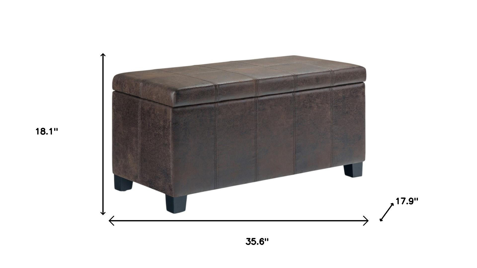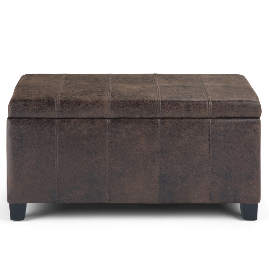 Practicality and fashion mix together with this handy 36-inch dark brown and brown upholstery storage ottoman. Designed to discretely add hidden storage to your room without sacrificing seating or foot rest space. Ottomans are multi-functional additions to your space that add fashion and practical value. 18.10-inch h x 35.60-inch w x 17.90-inch d.