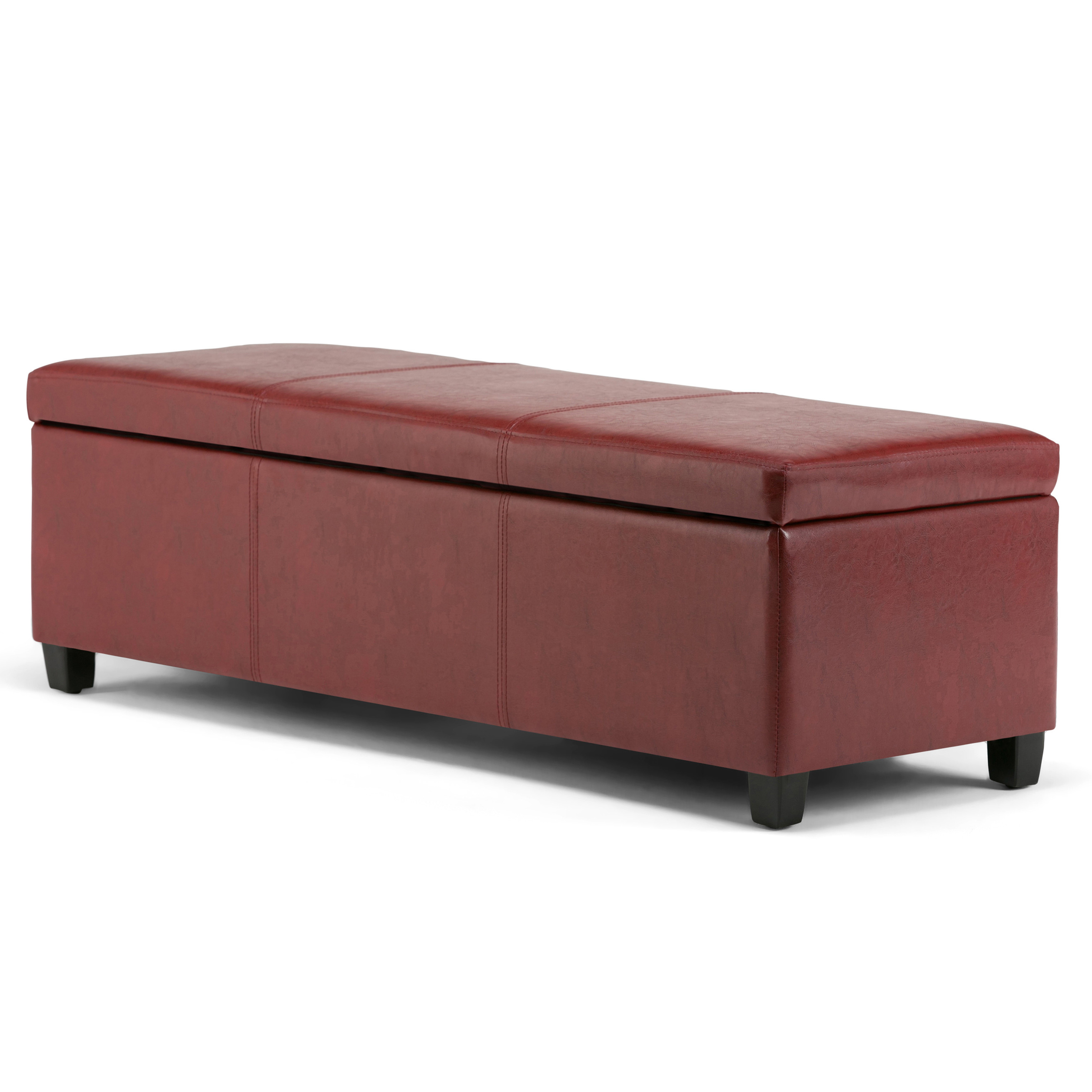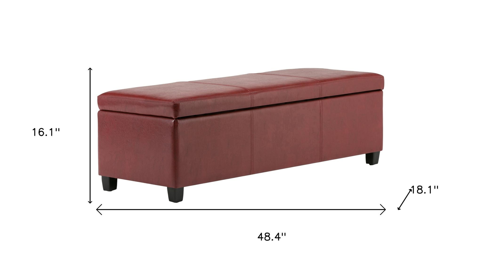 Optimize your space and add some charm to your room with the 48-inch dark brown and red upholstery storage ottoman. Designed to discretely add hidden storage to your room without sacrificing seating or foot rest space. Ottomans are multi-functional additions to your space that add fashion and practical value. 16.10-inch h x 48.40-inch w x 18.10-inch d.