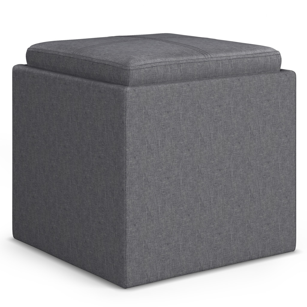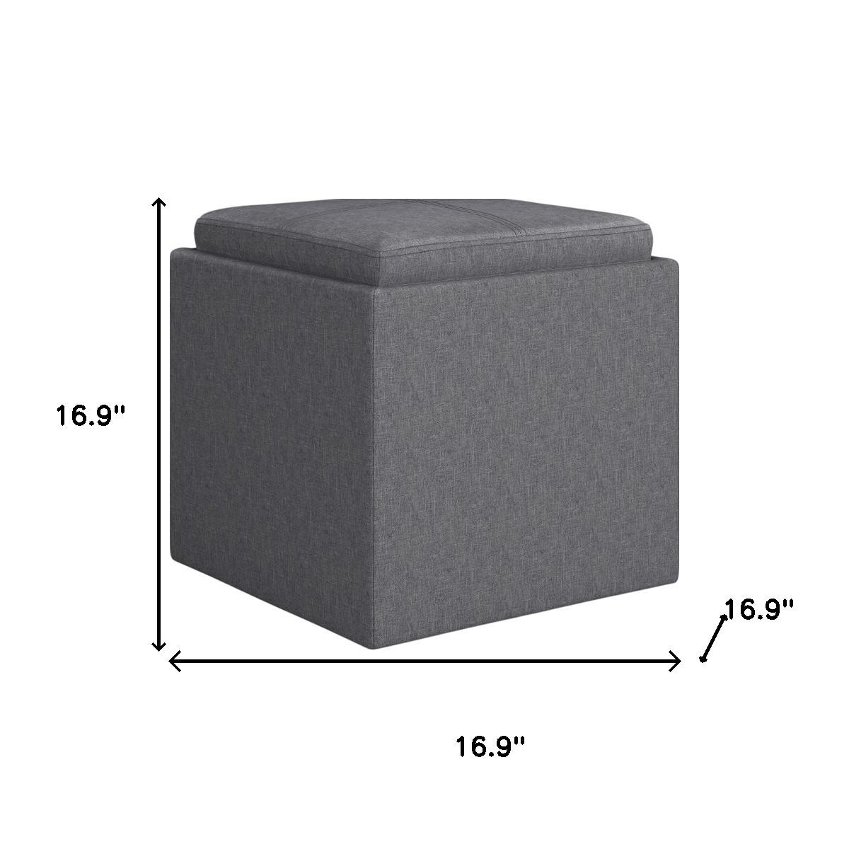 Practicality and fashion mix together with this handy 17-inch slate gray upholstery storage ottoman. Designed to discretely add hidden storage to your room without sacrificing seating or foot rest space. This multi-function ottoman features a cabinet area in addition to seating to help keep your space neat and tidy. Ottomans are multi-functional additions to your space that add fashion and practical value. 16.90-inch h x 16.90-inch w x 16.90-inch d.