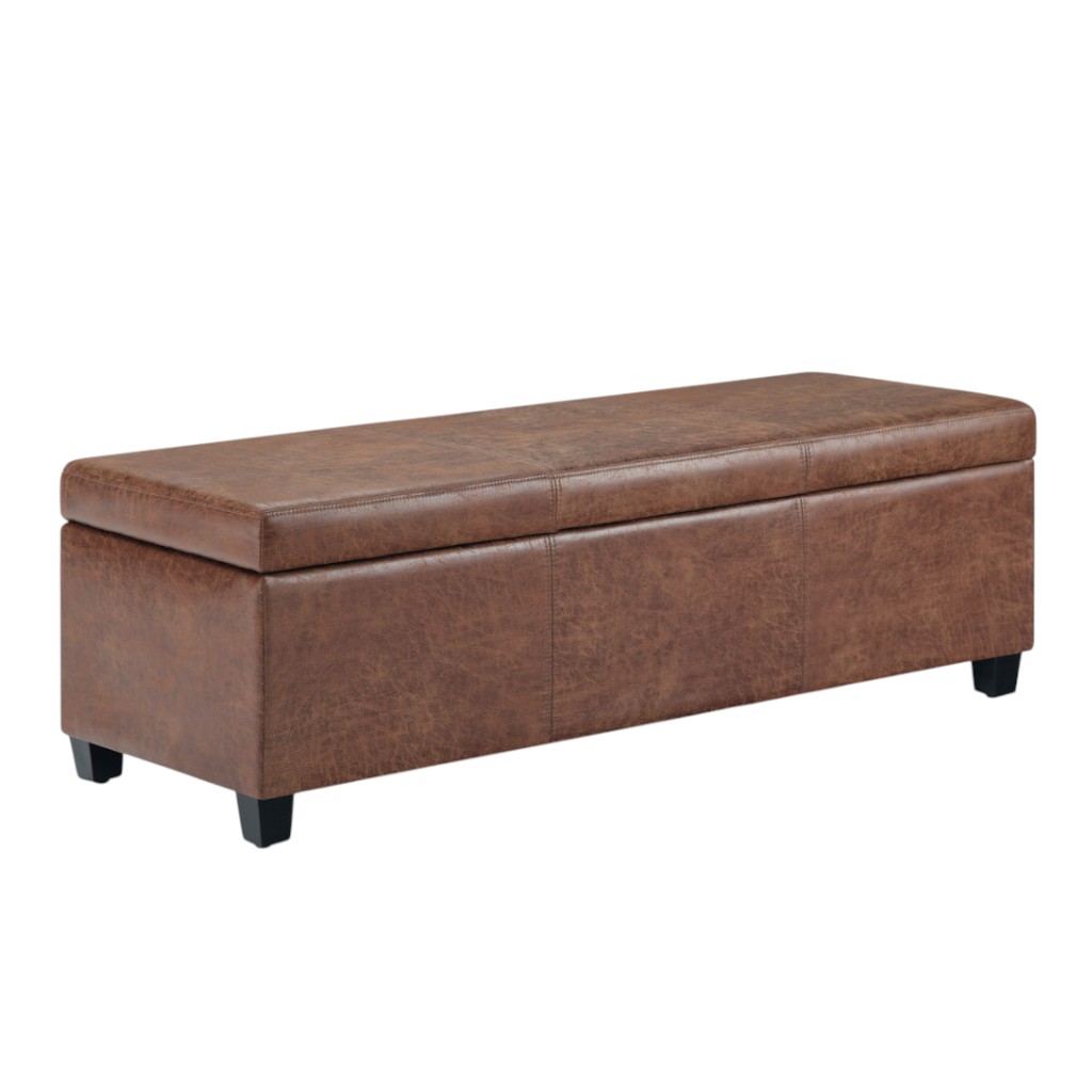 Get ready to relax with this 48-inch dark brown and brown upholstery storage ottoman. Designed to discretely add hidden storage to your room without sacrificing seating or foot rest space. Ottomans are multi-functional additions to your space that add fashion and practical value. 16.10-inch h x 48.40-inch w x 18.10-inch d.