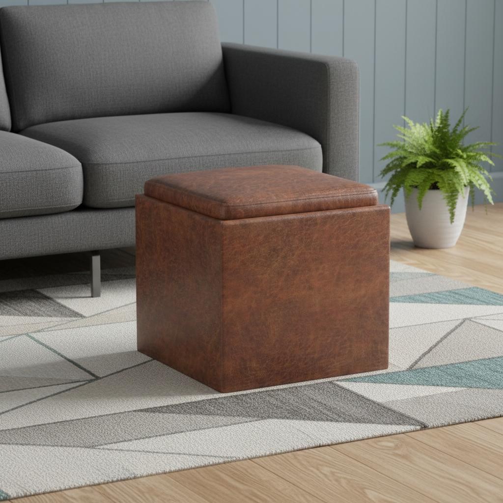 Add a good looking decorative accent to your space that is also practical for seating. Designed to discretely add hidden storage to your room without sacrificing seating or foot rest space. This multi-function ottoman features a cabinet area in addition to seating to help keep your space neat and tidy. Ottomans are multi-functional additions to your space that add fashion and practical value. 16.90-inch h x 16.90-inch w x 16.90-inch d.