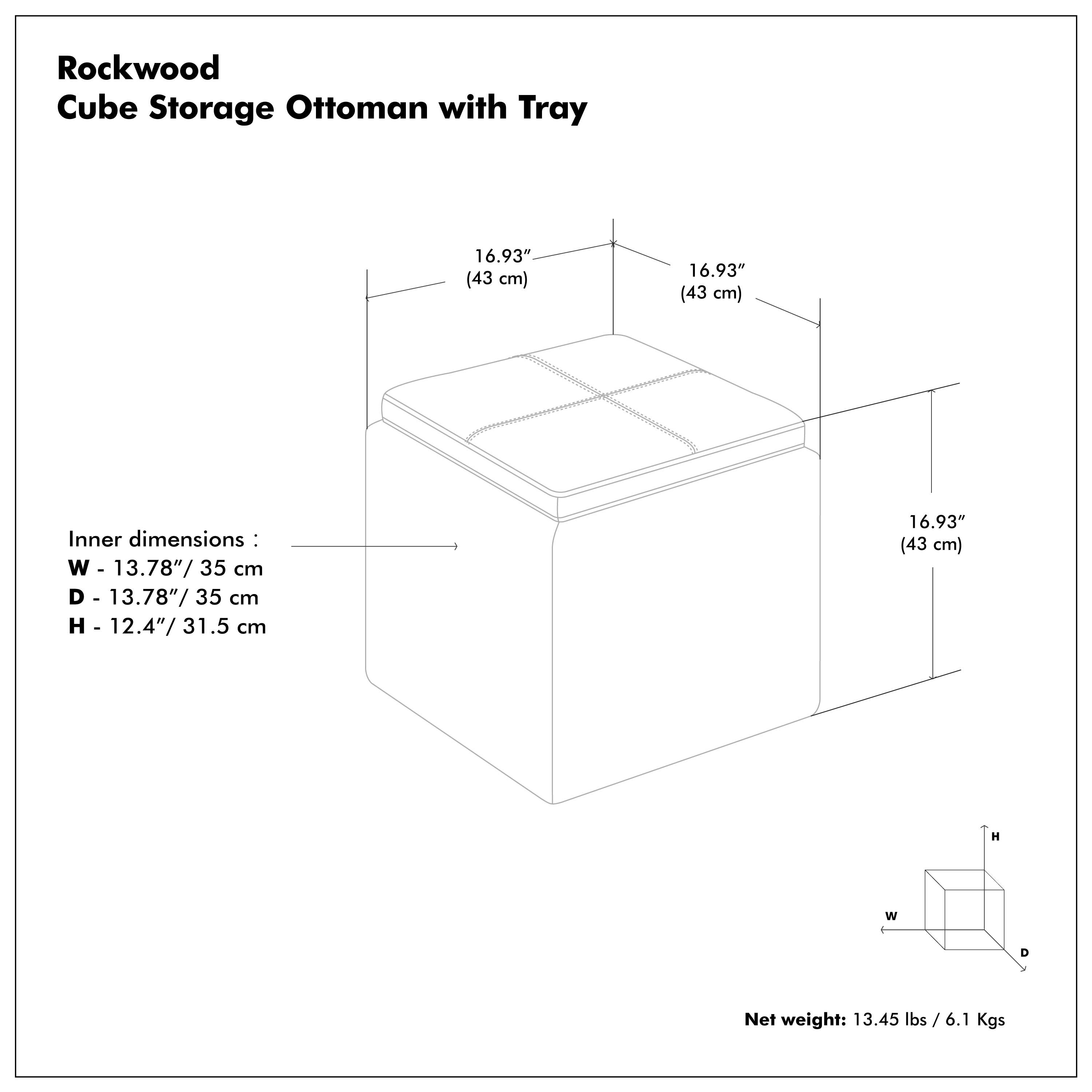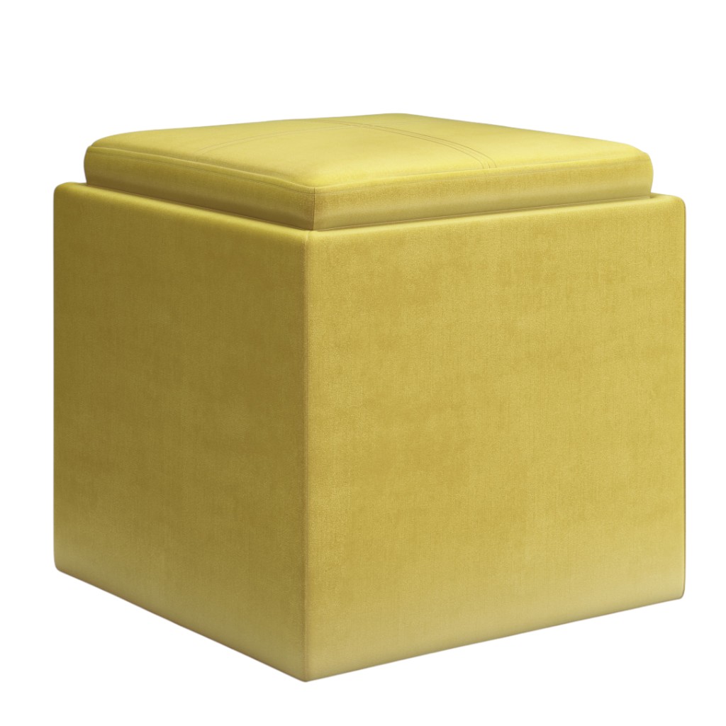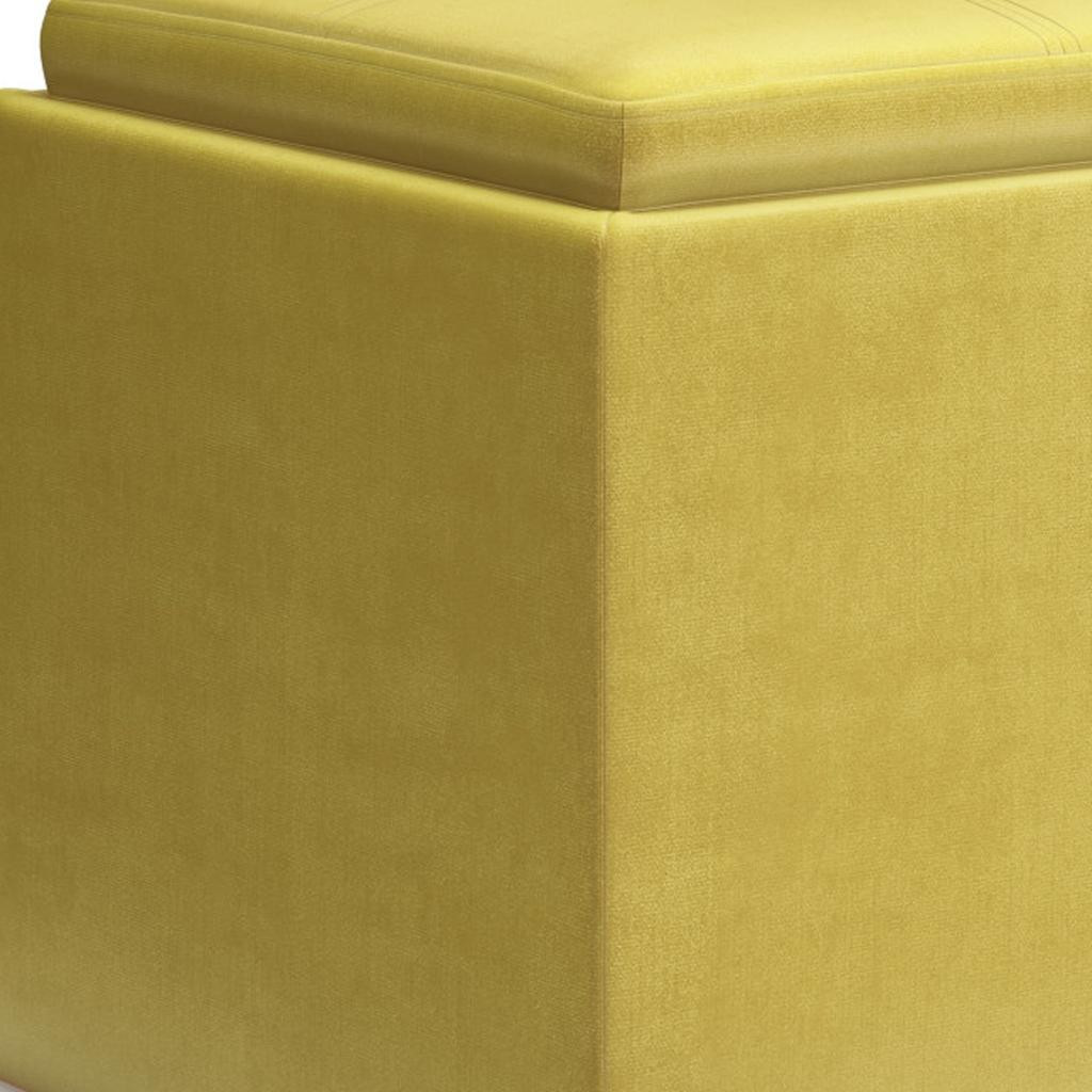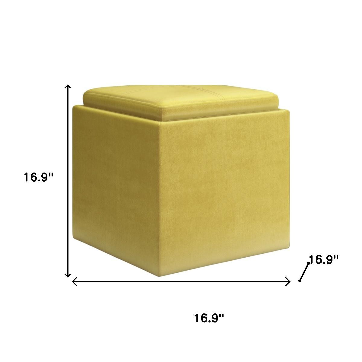 Practicality and fashion mix together with this handy 17-inch yellow upholstery storage ottoman. Designed to discretely add hidden storage to your room without sacrificing seating or foot rest space. This multi-function ottoman features a cabinet area in addition to seating to help keep your space neat and tidy. Easy to blend into most any room, a ottoman is a way to add a good looking accent to your space that can also be practical and useful. 16.90-inch h x 16.90-inch w x 16.90-inch d.