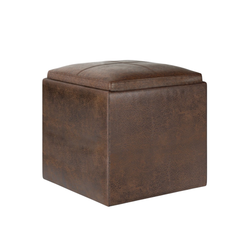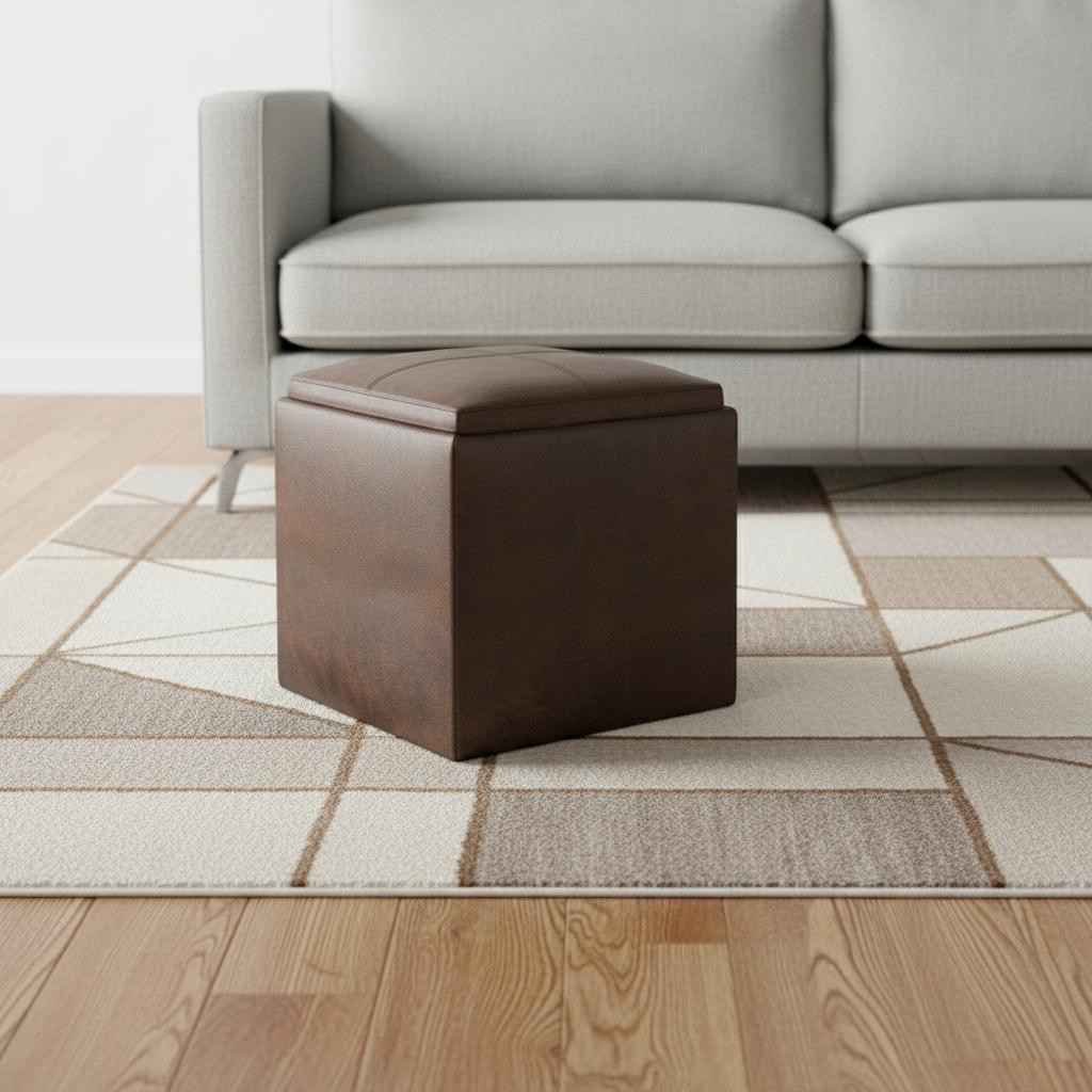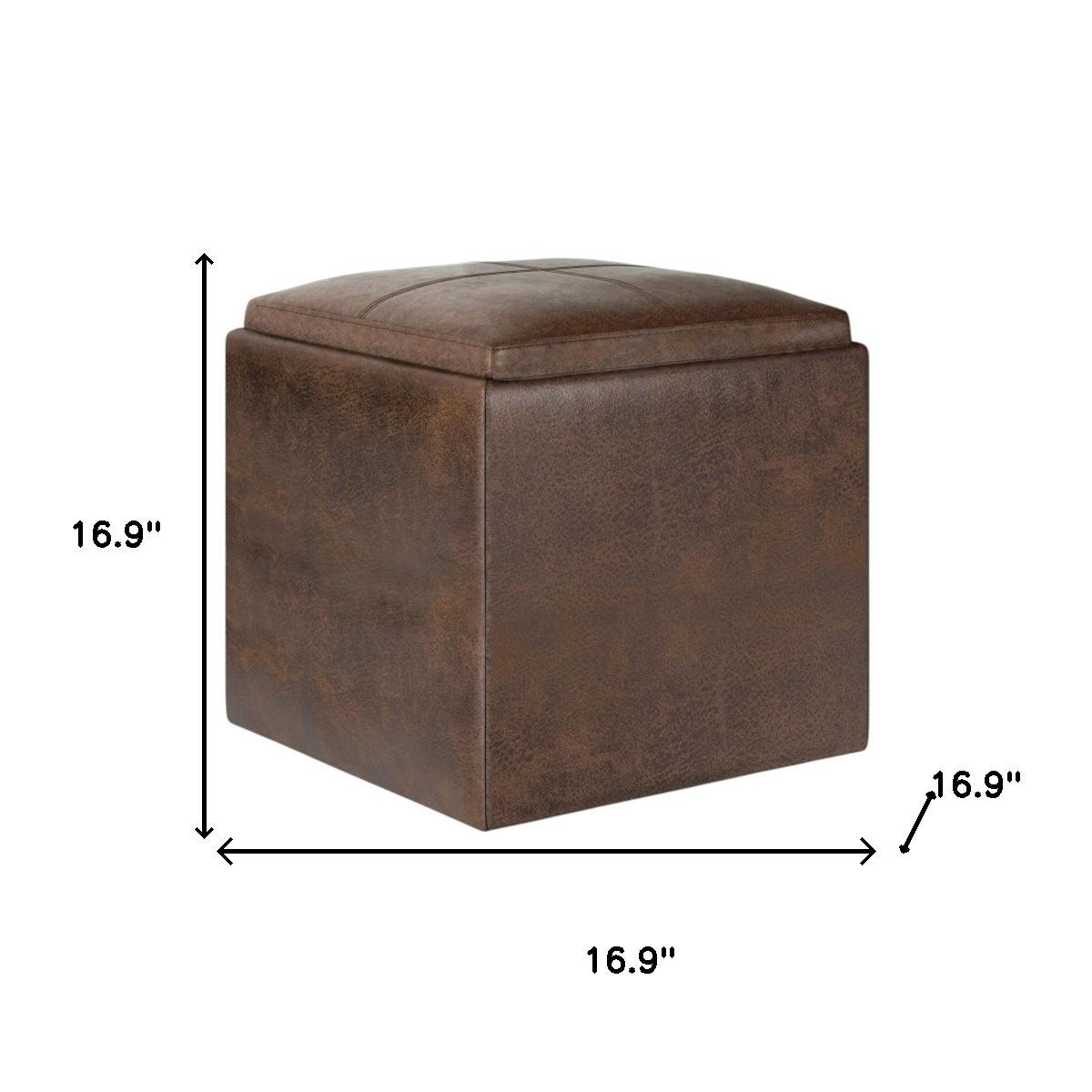 Practicality and fashion mix together with this handy 17-inch brown upholstery storage ottoman. Designed to discretely add hidden storage to your room without sacrificing seating or foot rest space. This multi-function ottoman features a cabinet area in addition to seating to help keep your space neat and tidy. Easy to blend into most any room, a ottoman is a way to add a good looking accent to your space that can also be practical and useful. 16.90-inch h x 16.90-inch w x 16.90-inch d.