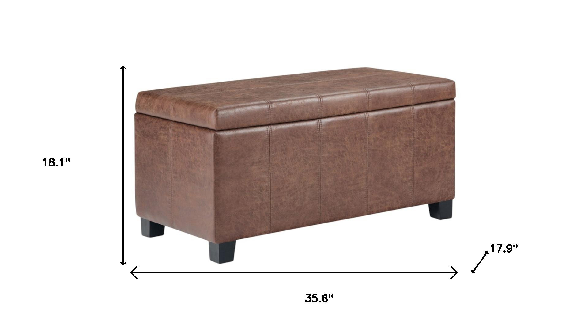 Optimize your space and add some charm to your room with the 36-inch dark brown and brown upholstery storage ottoman. Designed to discretely add hidden storage to your room without sacrificing seating or foot rest space. Easy to blend into most any room, a ottoman is a way to add a good looking accent to your space that can also be practical and useful. 18.10-inch h x 35.60-inch w x 17.90-inch d.