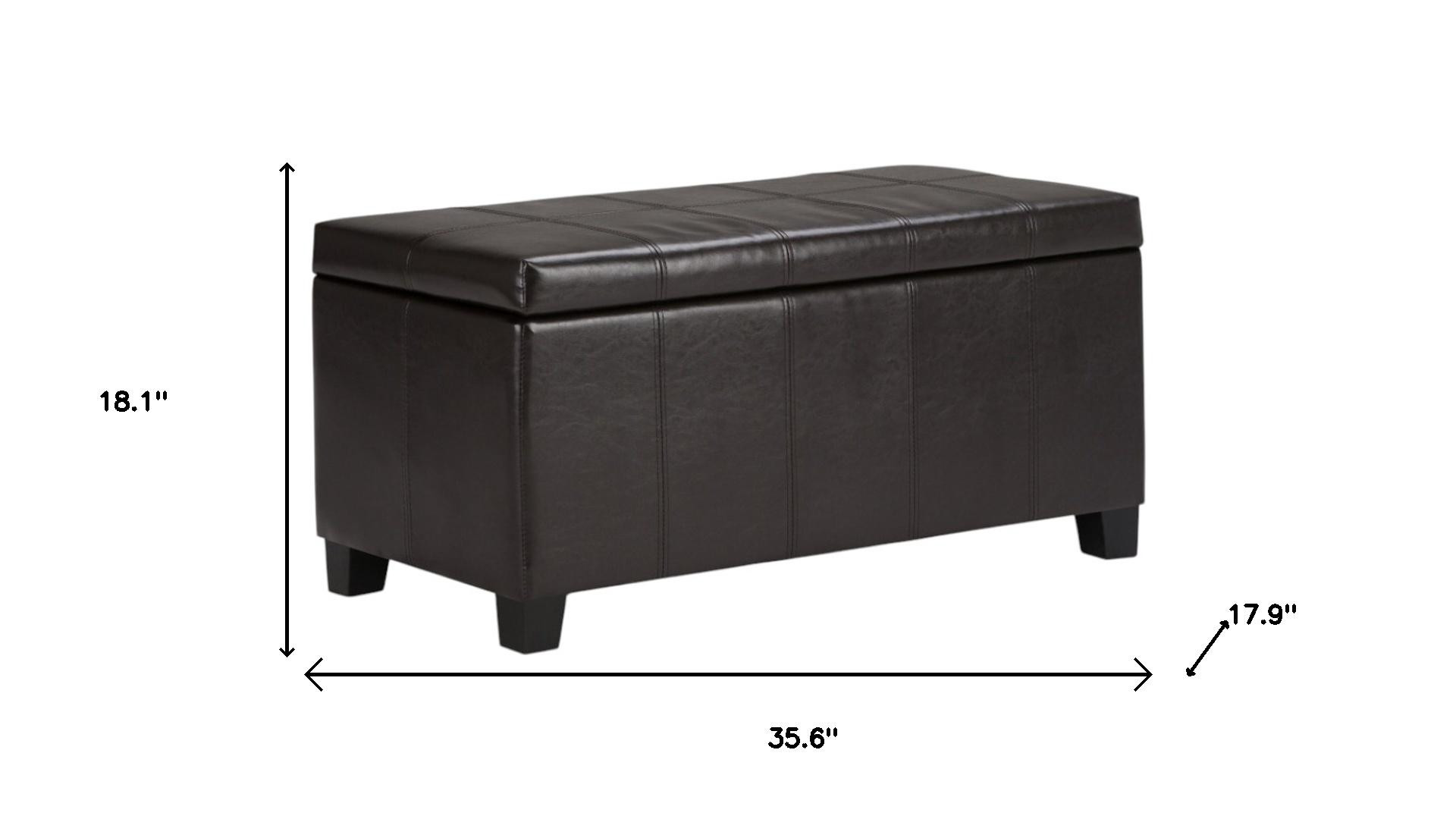 Practicality and fashion mix together with this handy 36-inch dark brown and brown upholstery storage ottoman. Designed to discretely add hidden storage to your room without sacrificing seating or foot rest space. Ottomans are multi-functional additions to your space that add fashion and practical value. 18.10-inch h x 35.60-inch w x 17.90-inch d.