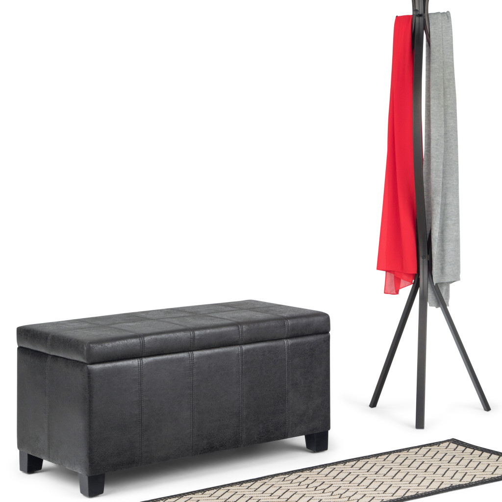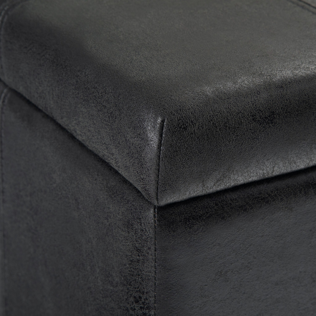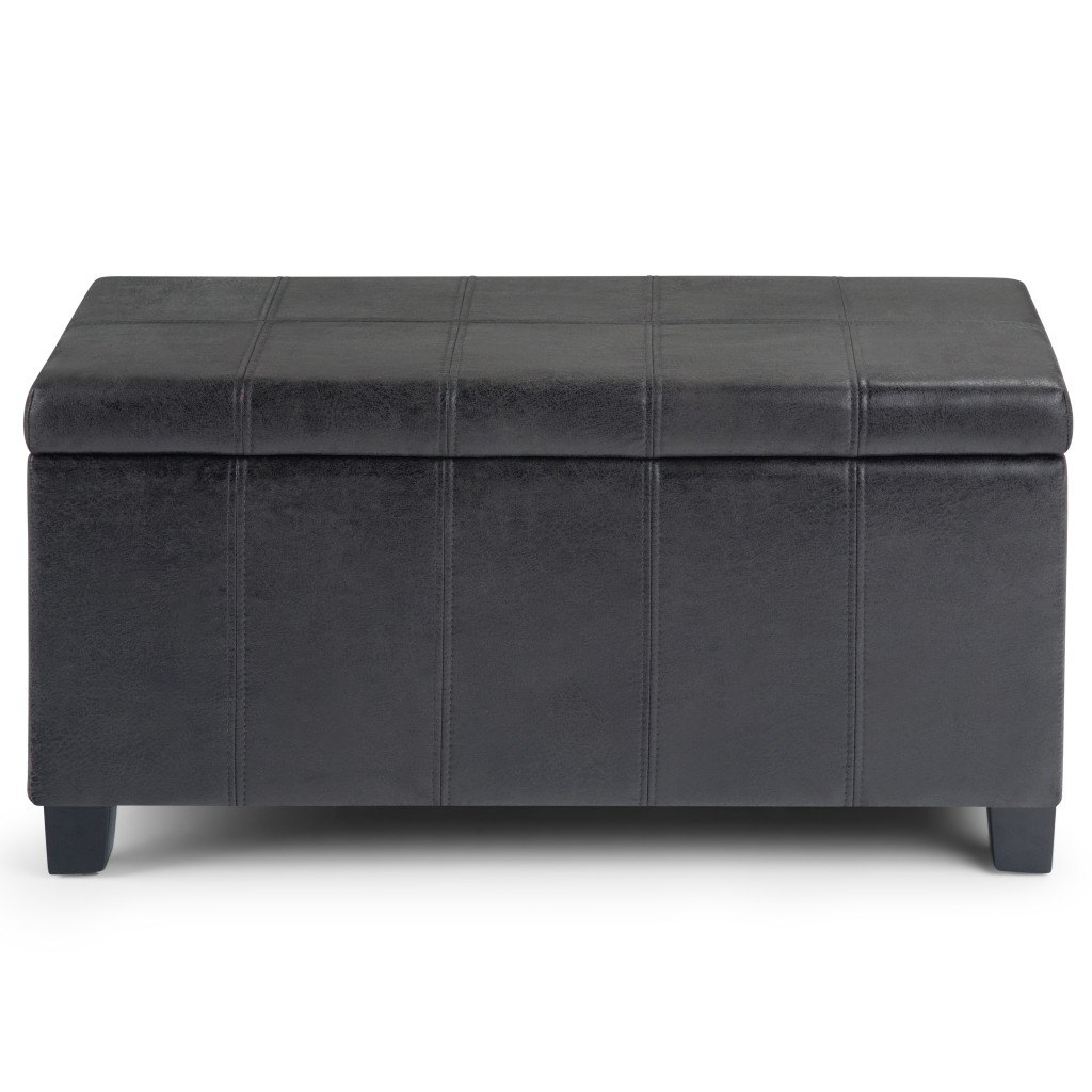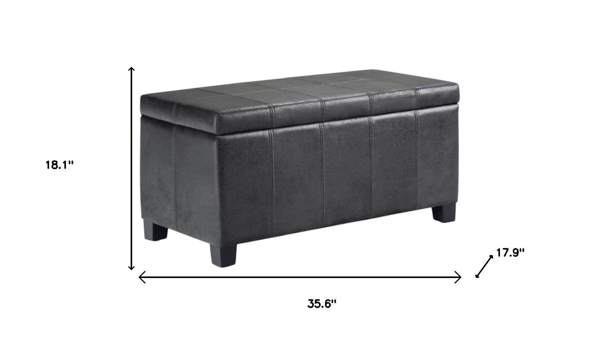 Get ready to relax with this 36-inch dark brown and black upholstery storage ottoman. Designed to discretely add hidden storage to your room without sacrificing seating or foot rest space. Ottomans are multi-functional additions to your space that add fashion and practical value. 18.10-inch h x 35.60-inch w x 17.90-inch d.