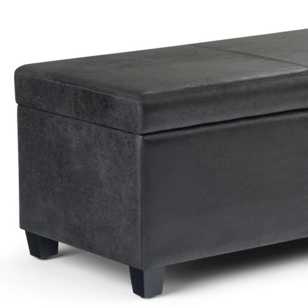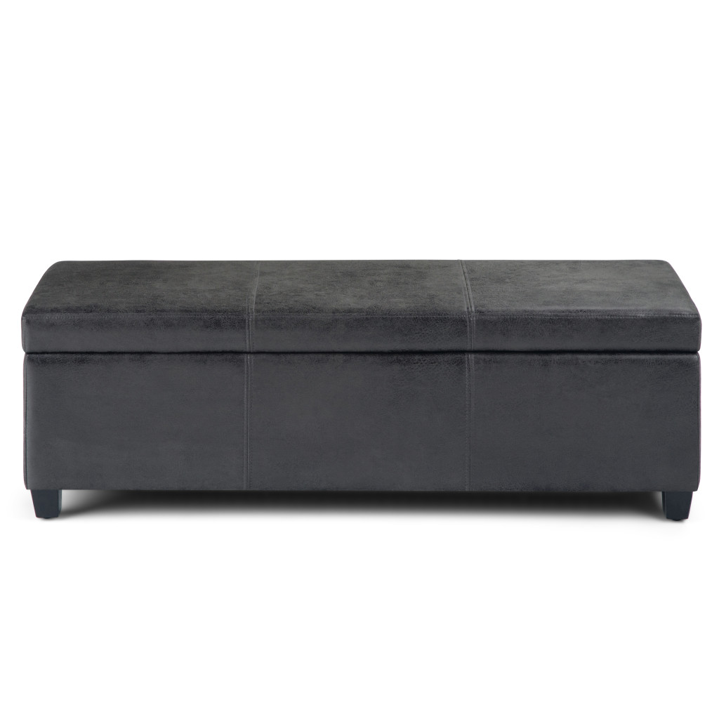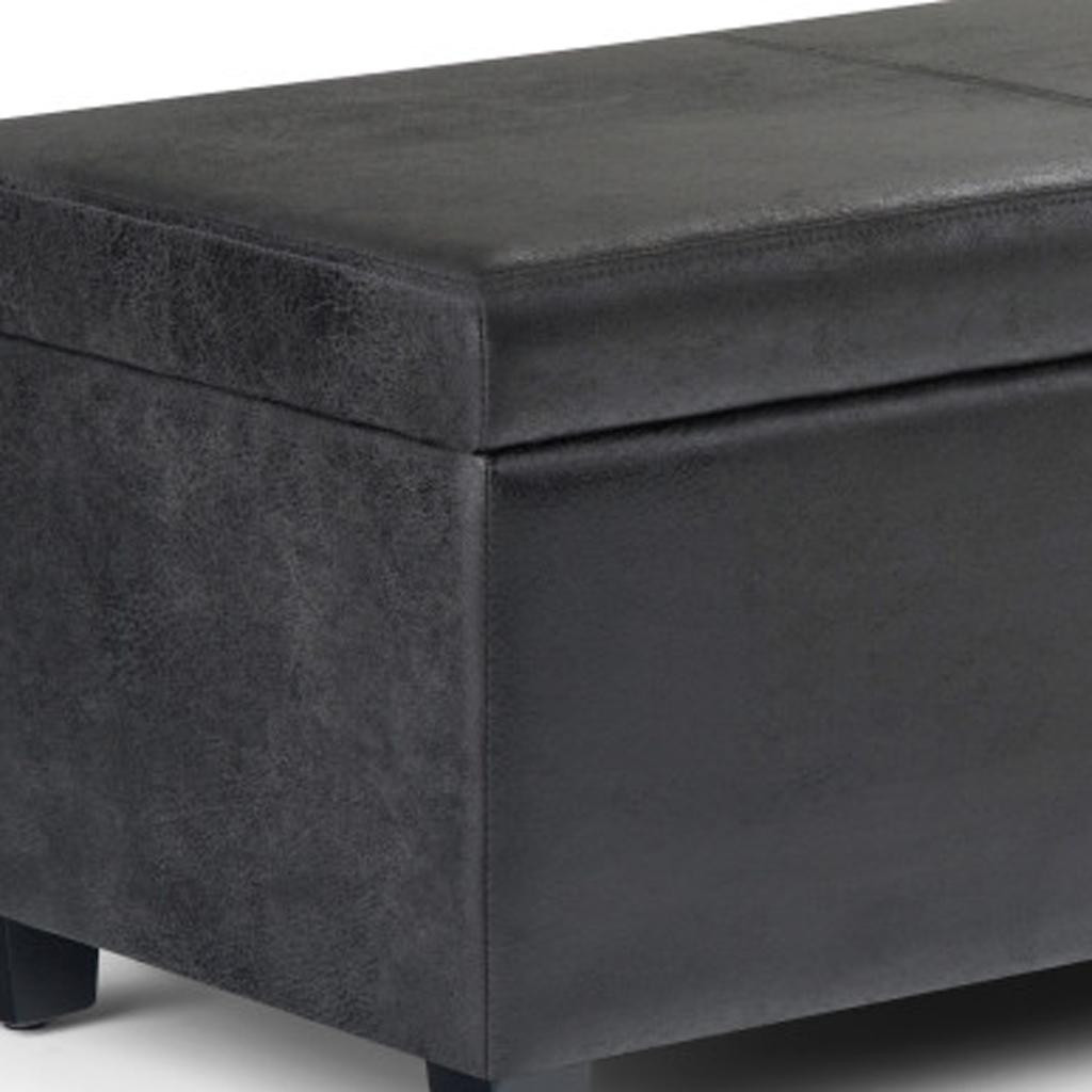 Avalon Storage Ottoman Bench in Distressed Black Distressed Vegan Faux Leather