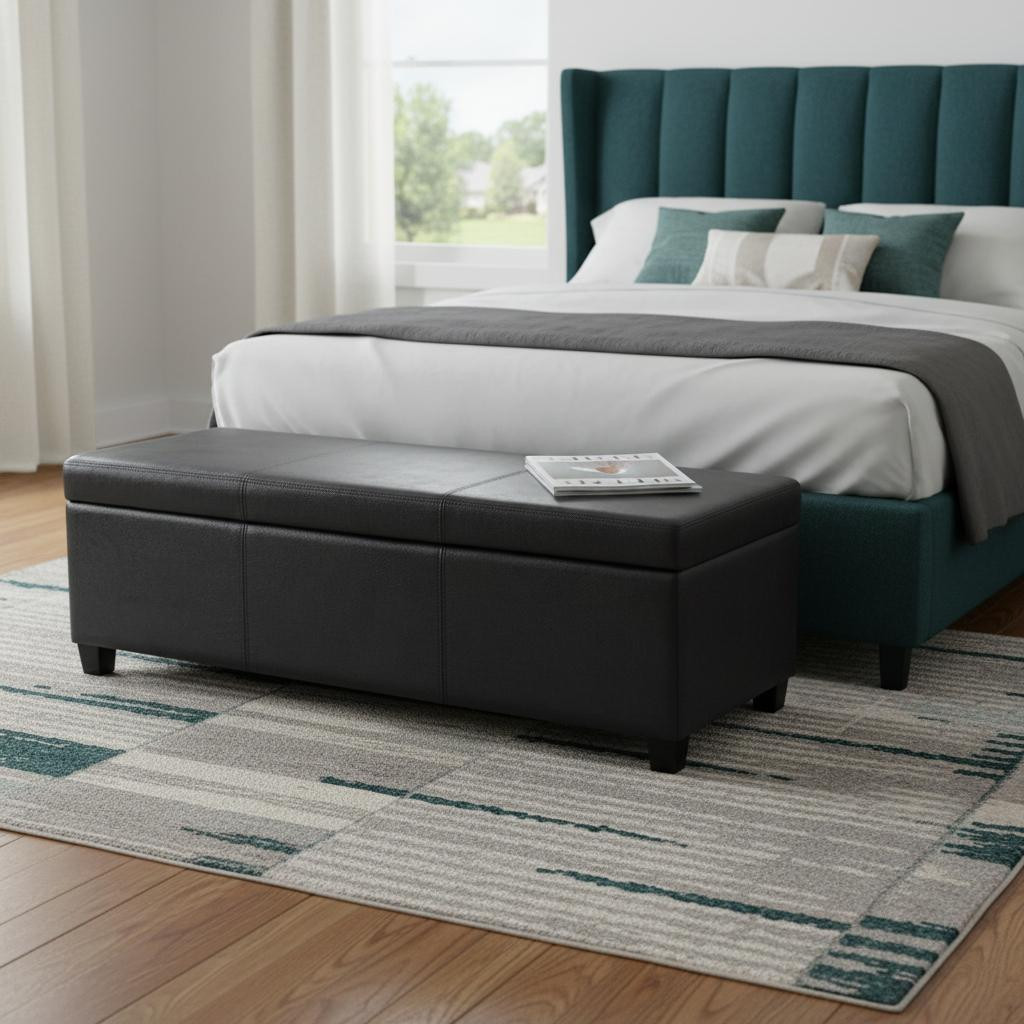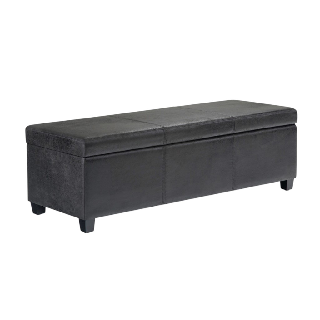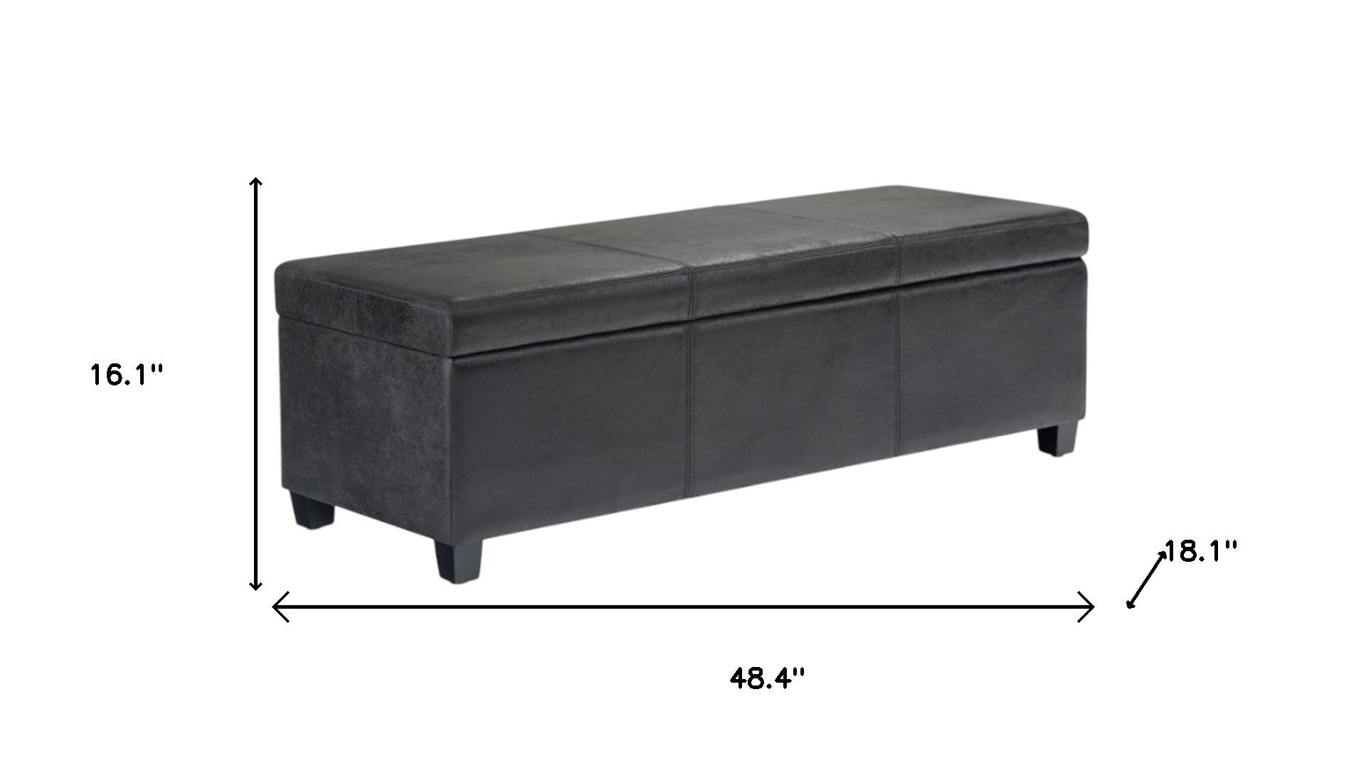 Avalon Storage Ottoman Bench in Distressed Black Distressed Vegan Faux Leather