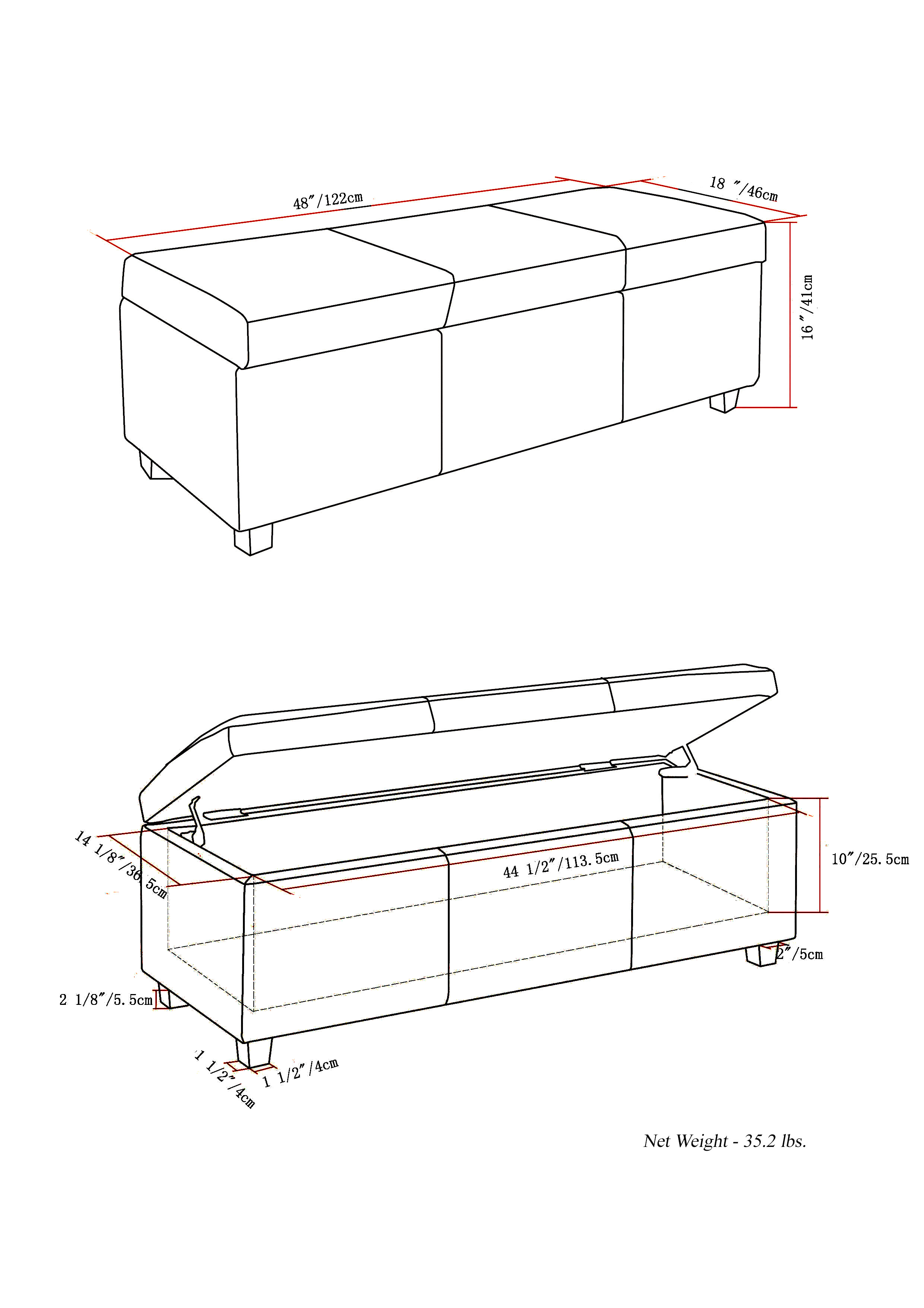 48" Dark Brown and Black Upholstery Storage Ottoman