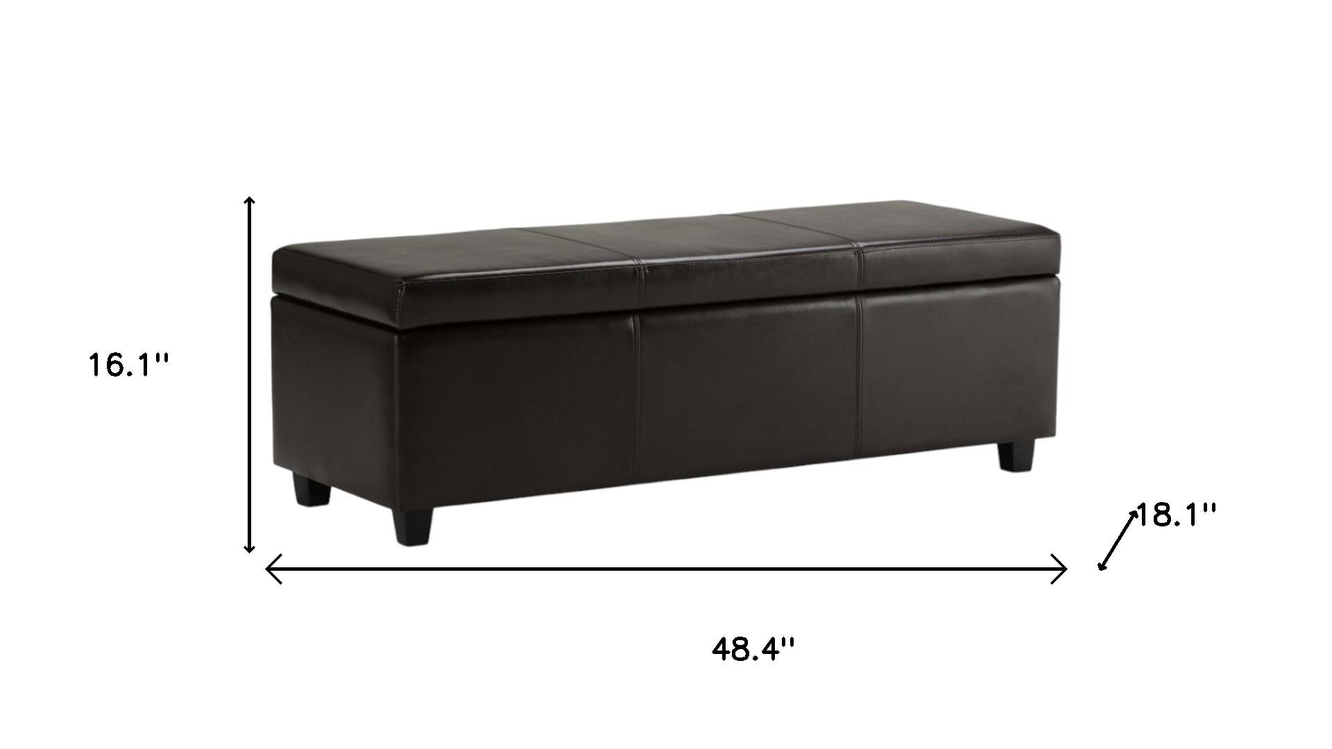 Get ready to relax with this 48-inch dark brown and brown upholstery storage ottoman. Designed to discretely add hidden storage to your room without sacrificing seating or foot rest space. Ottomans are multi-functional additions to your space that add fashion and practical value. 16.10-inch h x 48.40-inch w x 18.10-inch d.