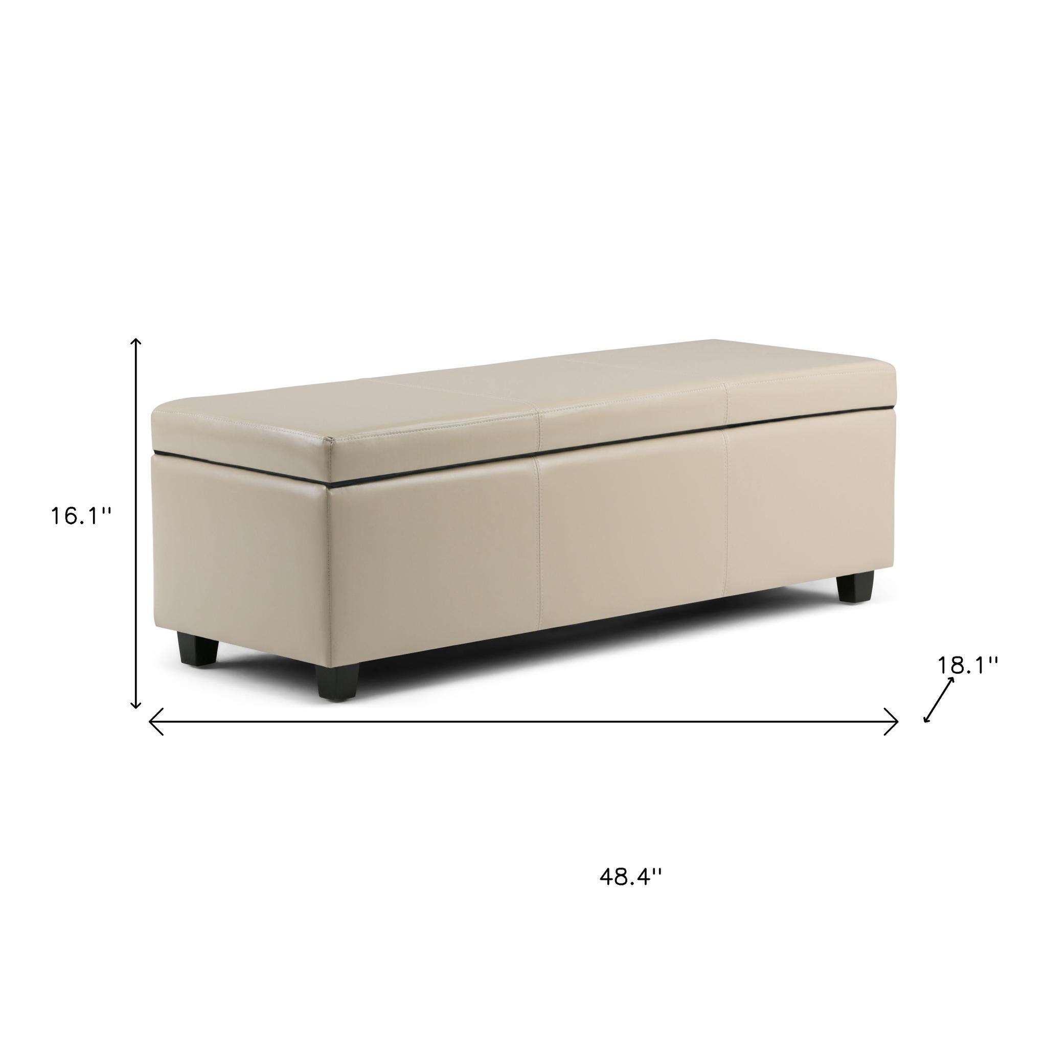 Optimize your space and add some charm to your room with the 48-inch dark brown and cream upholstery storage ottoman. Designed to discretely add hidden storage to your room without sacrificing seating or foot rest space. Easy to blend into most any room, a ottoman is a way to add a good looking accent to your space that can also be practical and useful. 16.10-inch h x 48.40-inch w x 18.10-inch d.