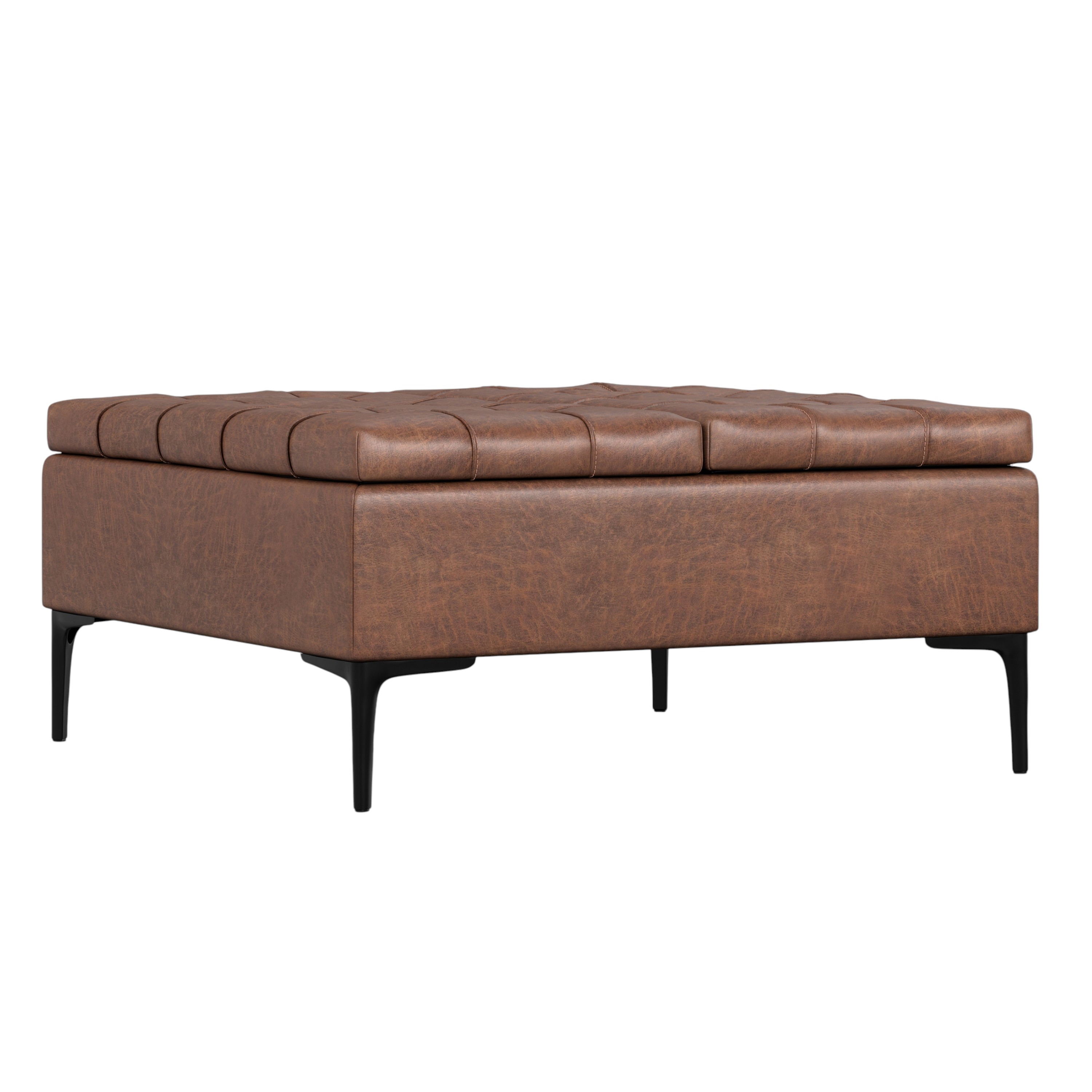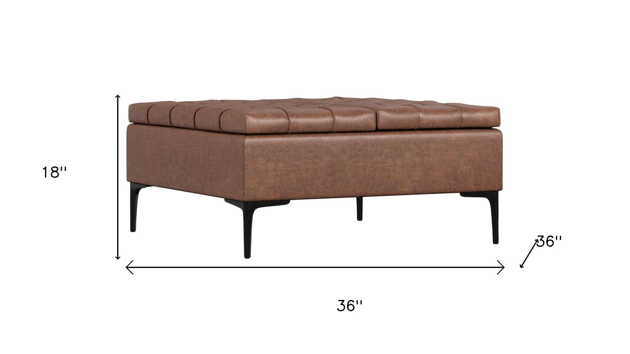 Get ready to relax with this 36-inch black and brown upholstery storage ottoman. Designed to discretely add hidden storage to your room without sacrificing seating or foot rest space. Easy to blend into most any room, a ottoman is a way to add a good looking accent to your space that can also be practical and useful. 18.00-inch h x 36.00-inch w x 36.00-inch d.