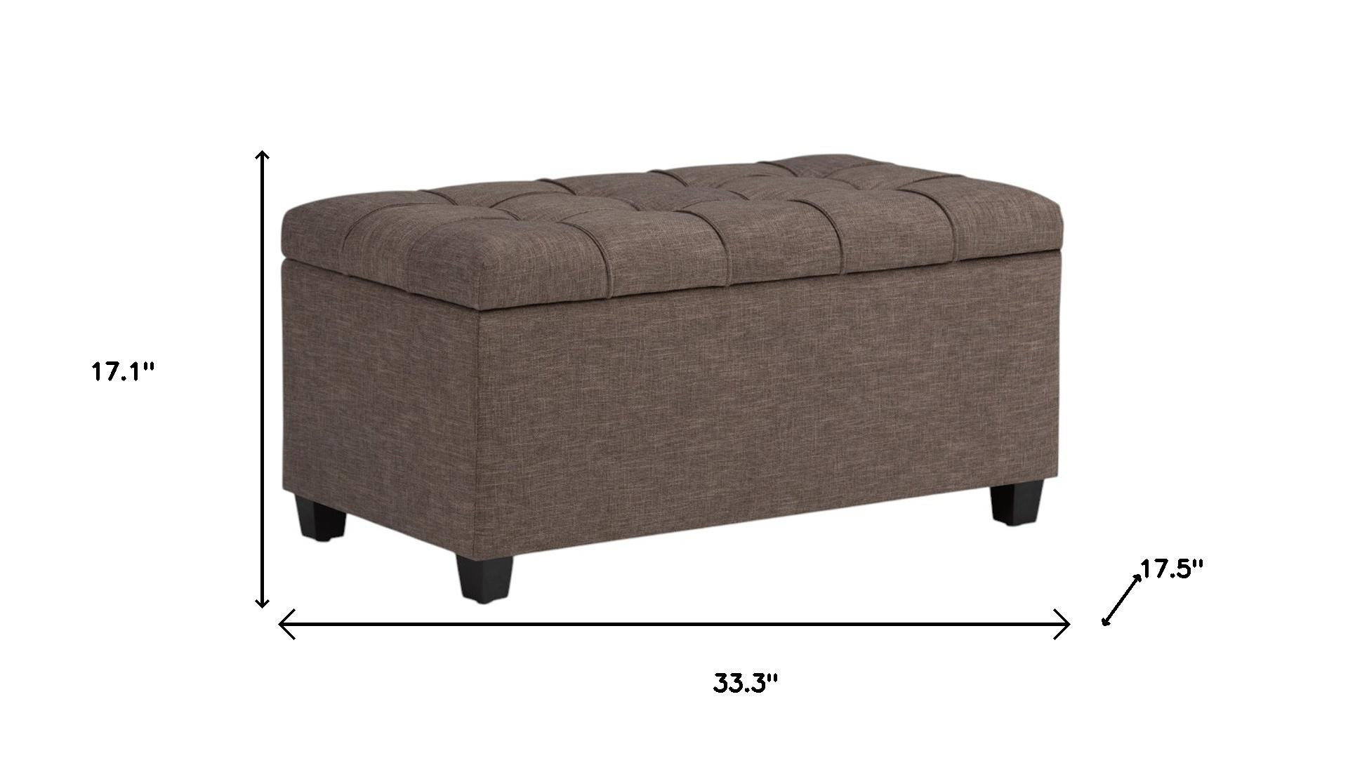Optimize your space and add some charm to your room with the 33-inch espresso and fawn upholstery storage ottoman. Designed to discretely add hidden storage to your room without sacrificing seating or foot rest space. Easy to blend into most any room, a ottoman is a way to add a good looking accent to your space that can also be practical and useful. 17.10-inch h x 33.30-inch w x 17.50-inch d.