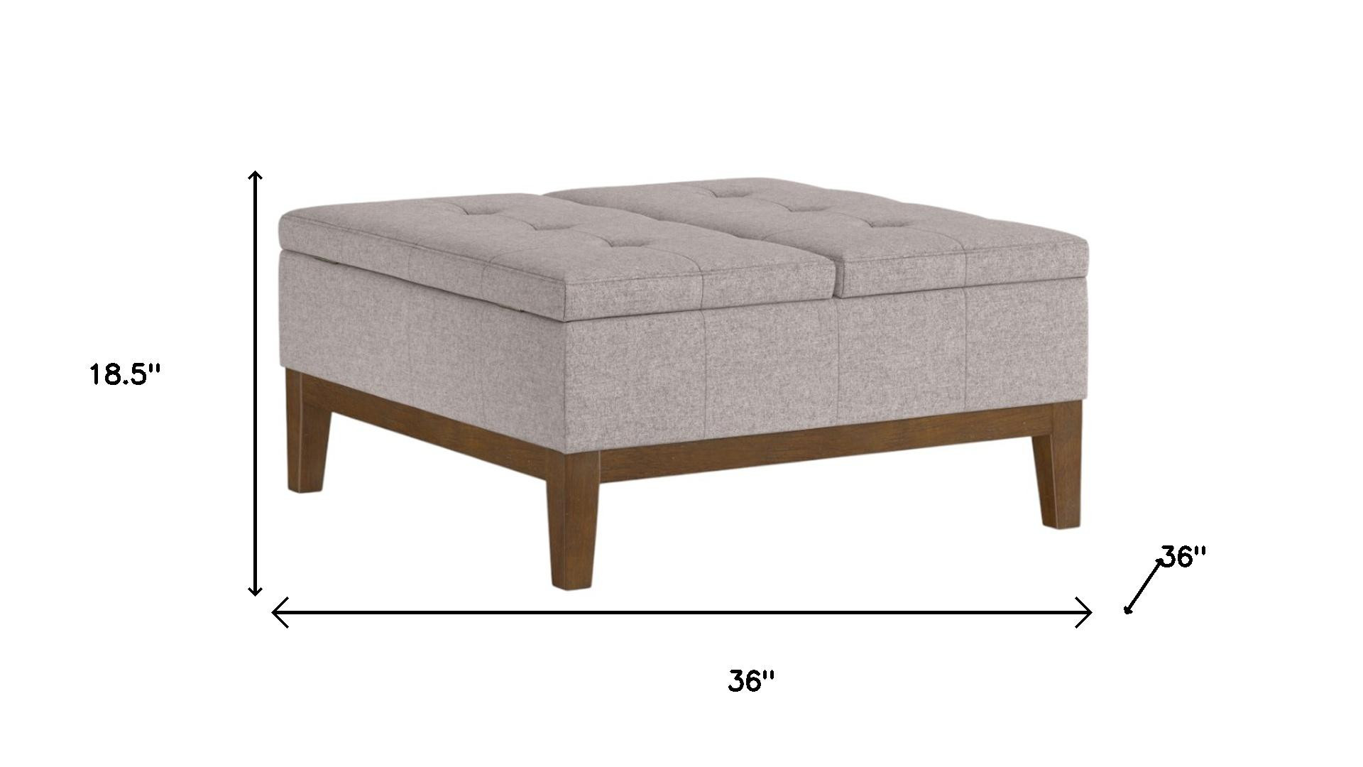 Optimize your space and add some charm to your room with the 36-inch walnut and cloud upholstery storage ottoman. Designed to discretely add hidden storage to your room without sacrificing seating or foot rest space. Easy to blend into most any room, a ottoman is a way to add a good looking accent to your space that can also be practical and useful. 18.50-inch h x 36.00-inch w x 36.00-inch d.