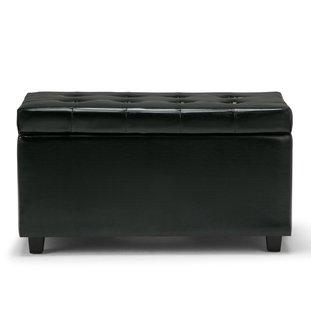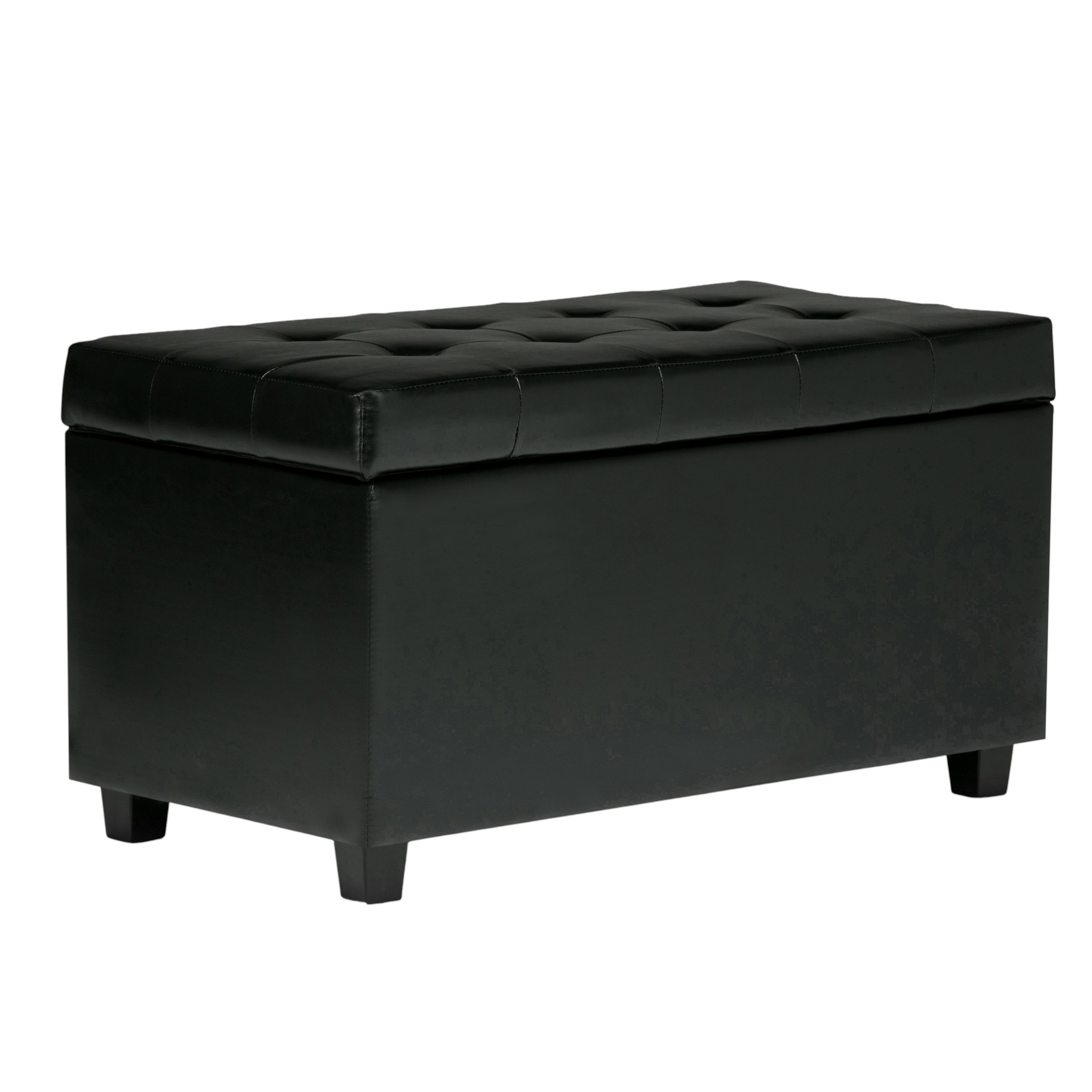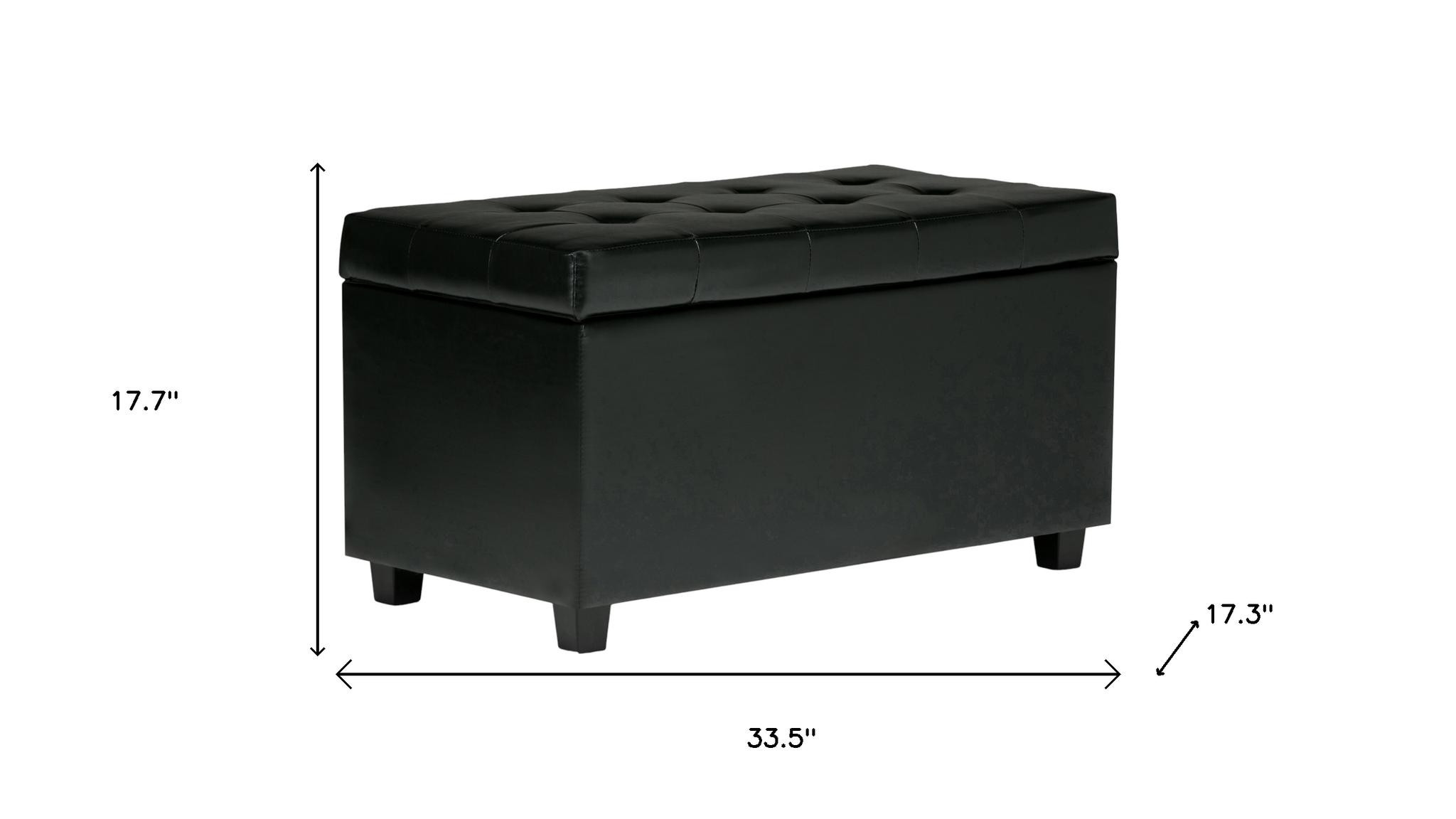 Optimize your space and add some charm to your room with the 34-inch dark brown and black upholstery storage ottoman. Designed to discretely add hidden storage to your room without sacrificing seating or foot rest space. Easy to blend into most any room, a ottoman is a way to add a good looking accent to your space that can also be practical and useful. 17.70-inch h x 33.50-inch w x 17.30-inch d.