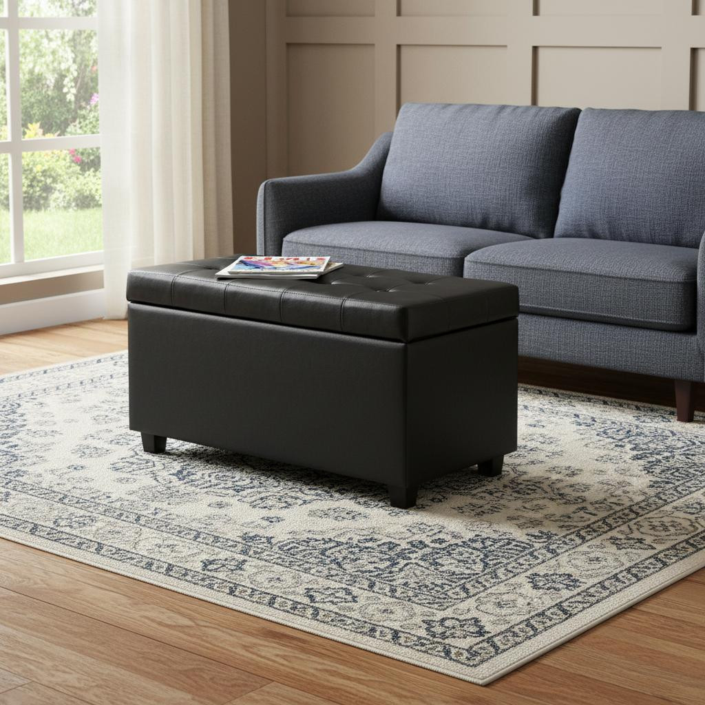 brown black upholstery storage ottoman, black upholstery storage ottoman, upholstery storage ottoman, dark brown black upholstery storage, 34" dark brown black upholstery |