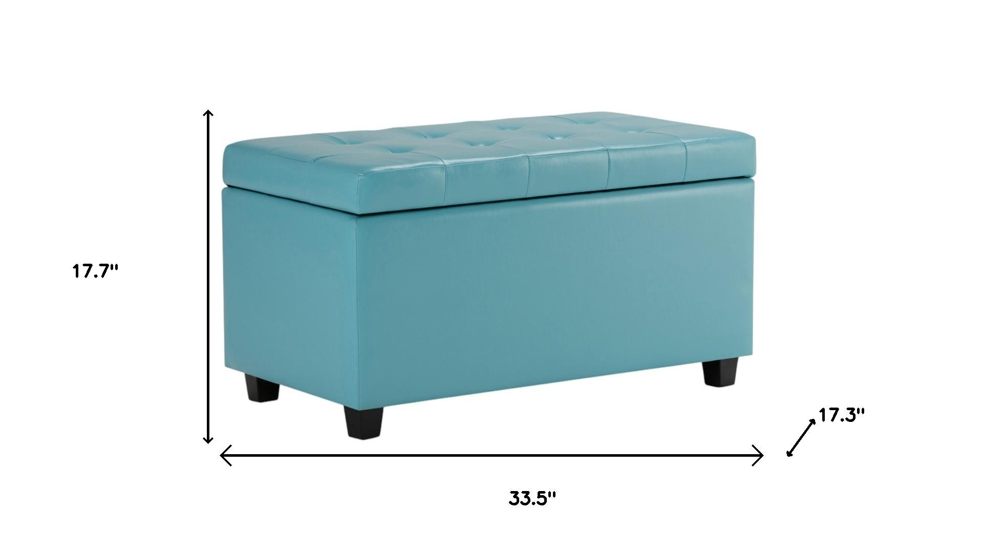 Get ready to relax with this 34-inch dark brown and blue upholstery storage ottoman. Designed to discretely add hidden storage to your room without sacrificing seating or foot rest space. Easy to blend into most any room, a ottoman is a way to add a good looking accent to your space that can also be practical and useful. 17.70-inch h x 33.50-inch w x 17.30-inch d.