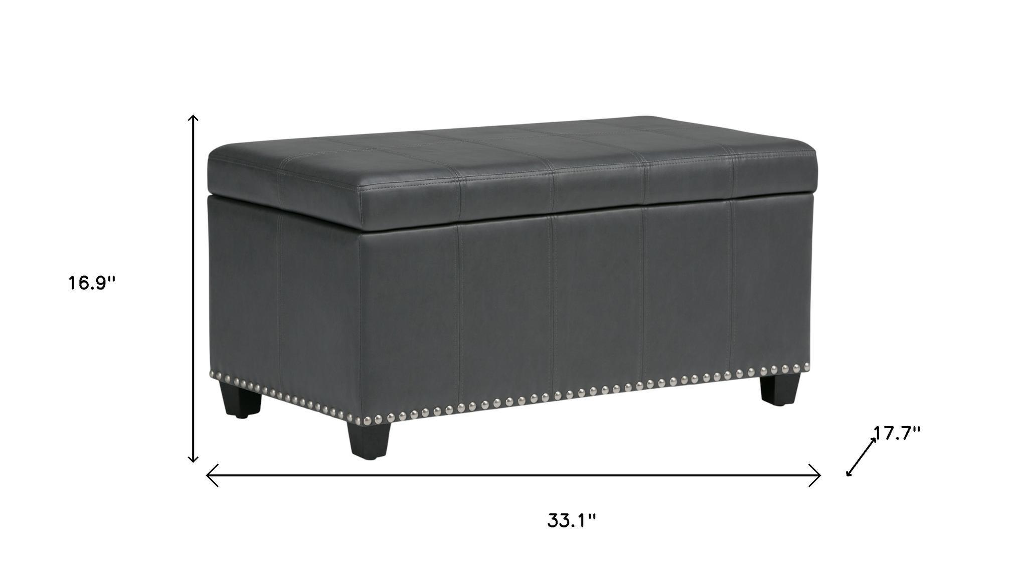 Get ready to relax with this 33-inch espresso and gray upholstery storage ottoman. Designed to discretely add hidden storage to your room without sacrificing seating or foot rest space. Easy to blend into most any room, a ottoman is a way to add a good looking accent to your space that can also be practical and useful. 16.90-inch h x 33.10-inch w x 17.70-inch d.