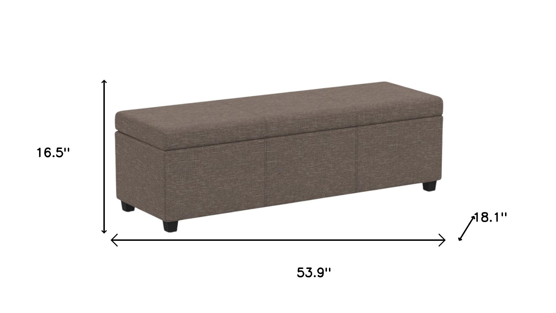 Optimize your space and add some charm to your room with the 54-inch dark brown and fawn upholstery storage ottoman. Designed to discretely add hidden storage to your room without sacrificing seating or foot rest space. Easy to blend into most any room, a ottoman is a way to add a good looking accent to your space that can also be practical and useful. 16.50-inch h x 53.90-inch w x 18.10-inch d.