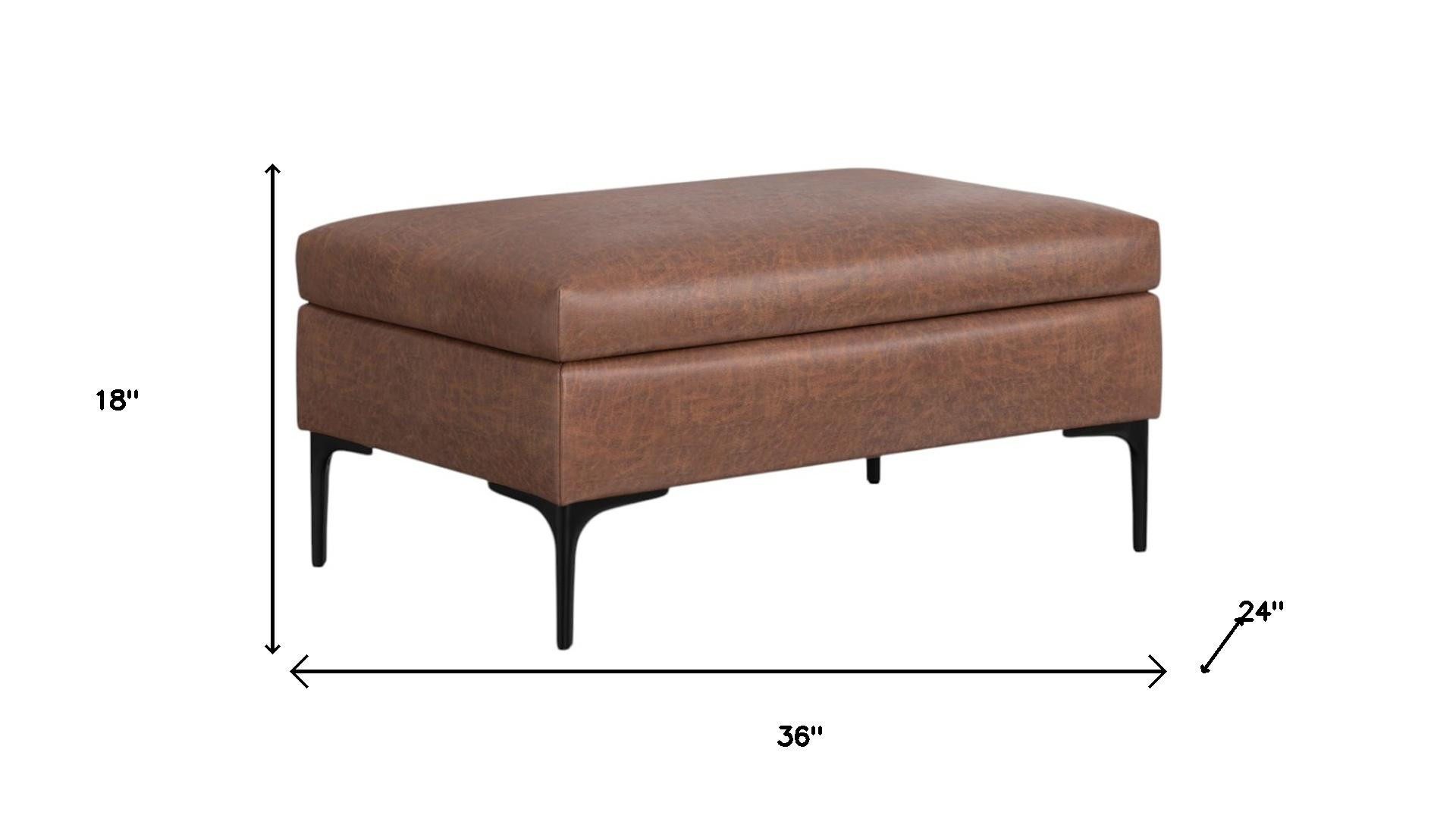 Practicality and fashion mix together with this handy 36-inch black and brown upholstery storage ottoman. Designed to discretely add hidden storage to your room without sacrificing seating or foot rest space. Easy to blend into most any room, a ottoman is a way to add a good looking accent to your space that can also be practical and useful. 18.00-inch h x 36.00-inch w x 24.00-inch d.