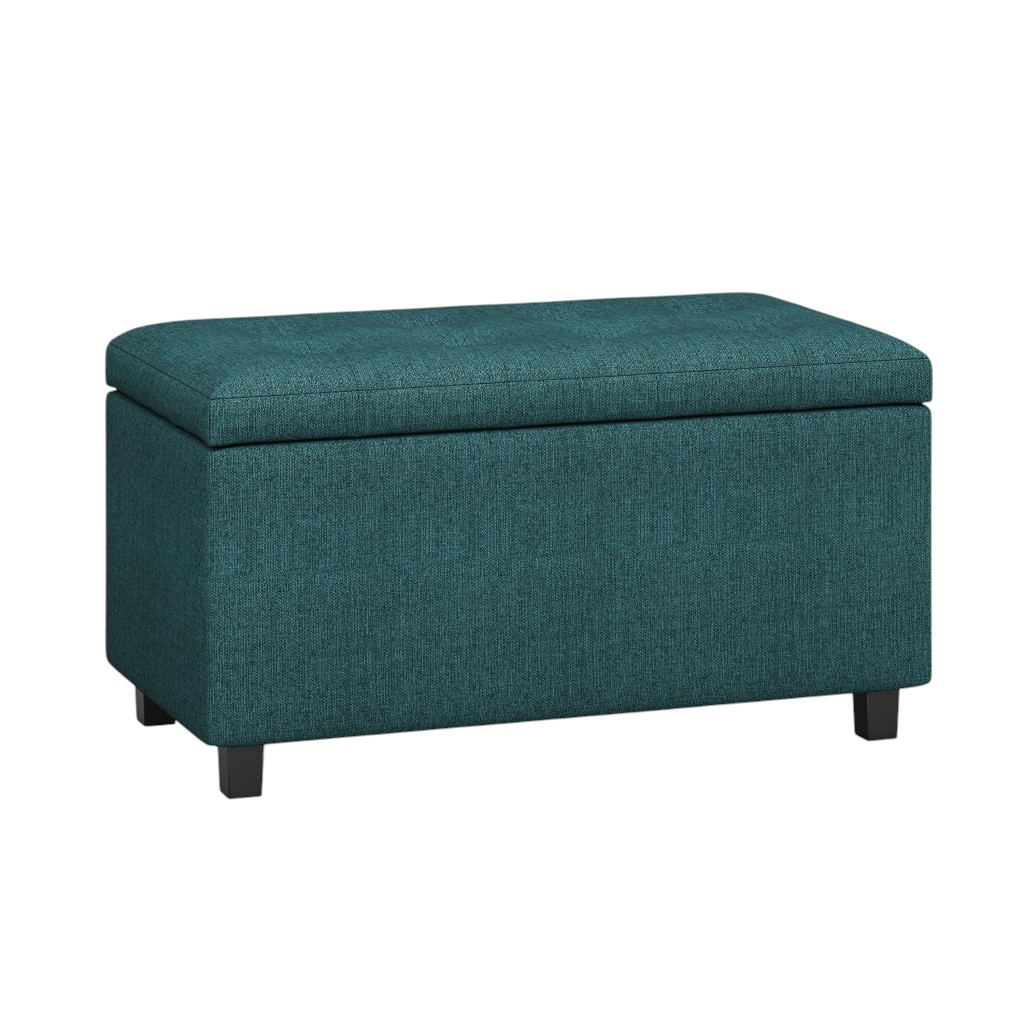 Get ready to relax with this 34-inch dark brown and teal blue upholstery storage ottoman. Designed to discretely add hidden storage to your room without sacrificing seating or foot rest space. Ottomans are multi-functional additions to your space that add fashion and practical value. 17.70-inch h x 33.50-inch w x 17.30-inch d.
