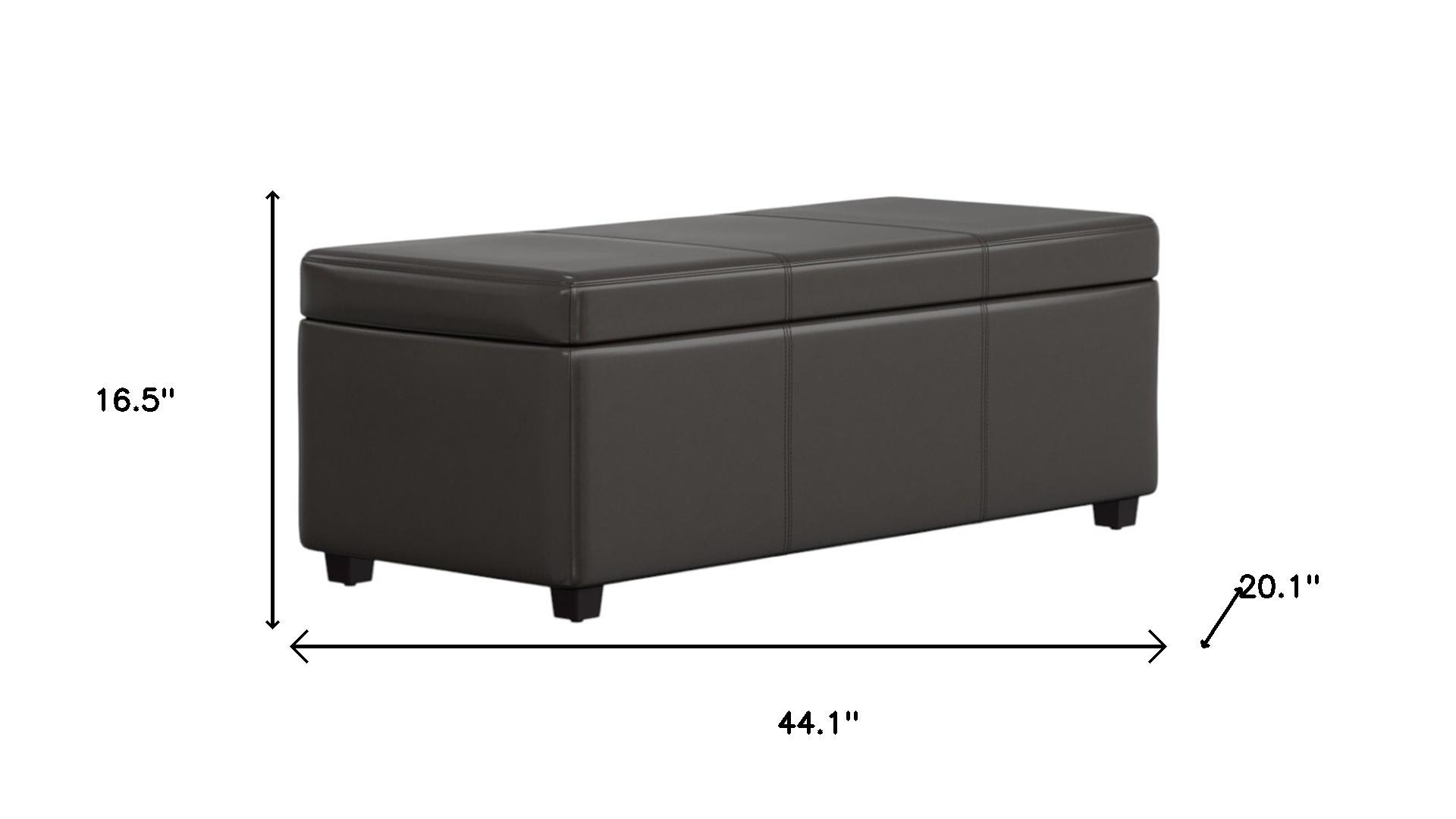 Get ready to relax with this 44-inch dark brown and brown upholstery storage ottoman. Designed to discretely add hidden storage to your room without sacrificing seating or foot rest space. Easy to blend into most any room, a ottoman is a way to add a good looking accent to your space that can also be practical and useful. 16.50-inch h x 44.10-inch w x 20.10-inch d.